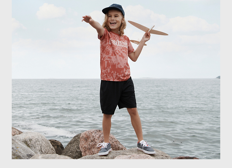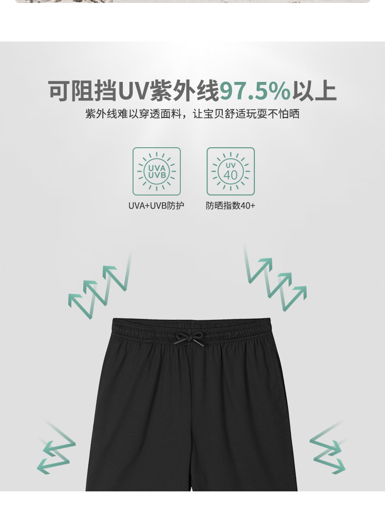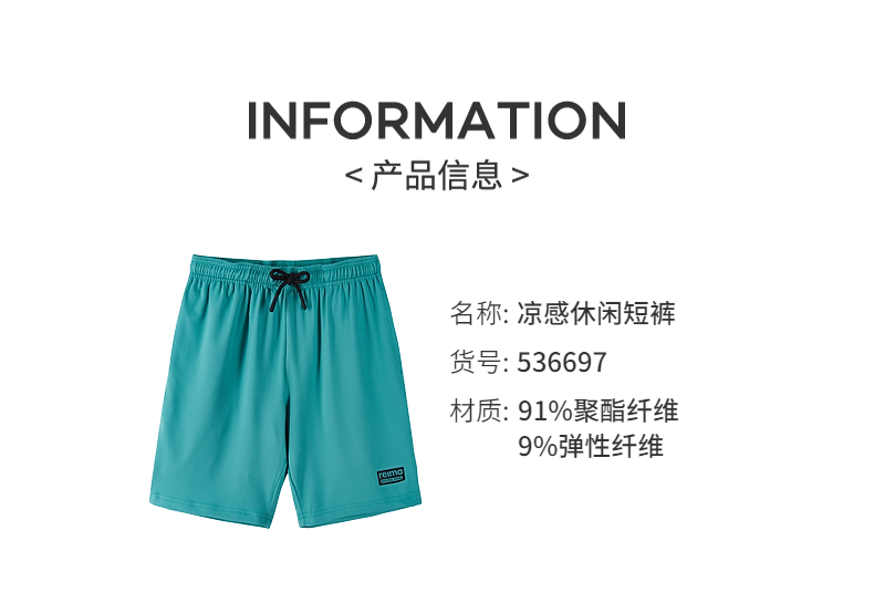 reima男孩儿童大童短裤新款休闲舒适字母运动纯色抽绳裤子