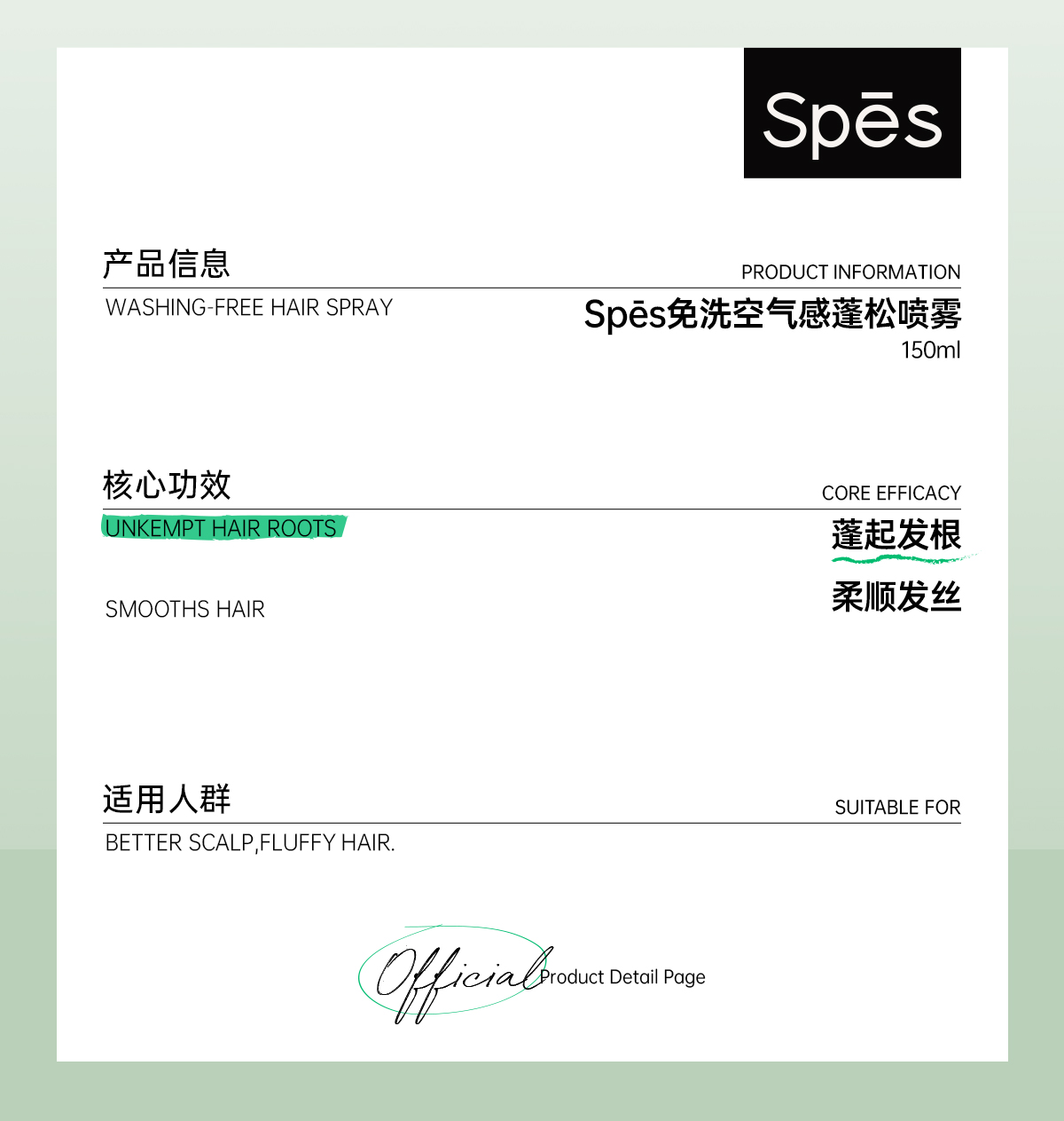 spes干发喷雾免洗头高颅顶蓬松喷雾刘海神器去油诗裴丝