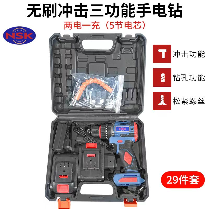 NSK无刷冲击三功能手电钻两电一充(5节电芯)塑箱包装