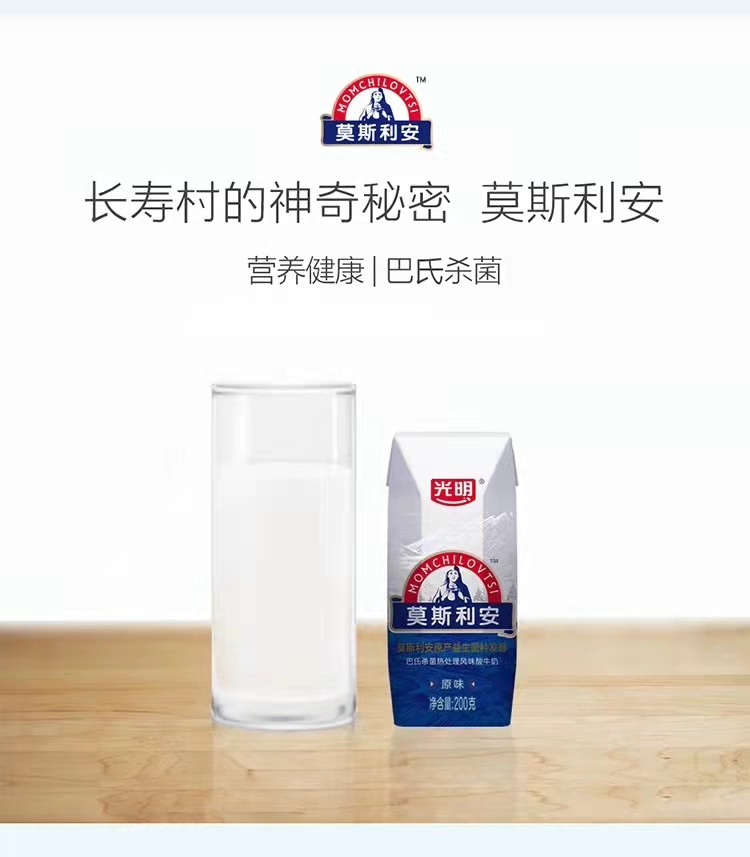 光明光明200g钻石包莫斯利安巴氏杀菌热处理风味酸牛奶(原味)1*12