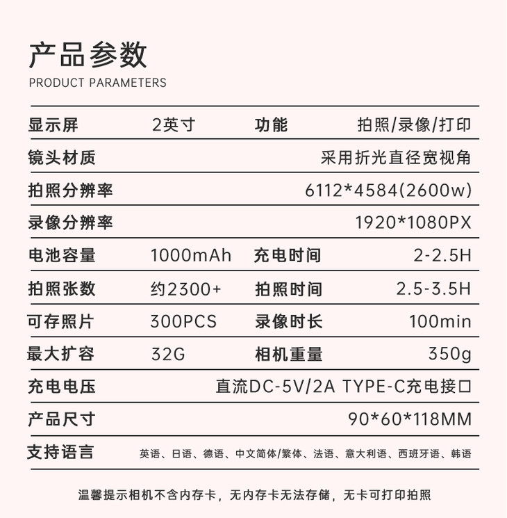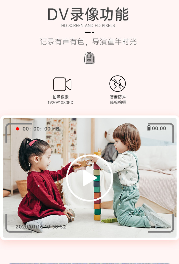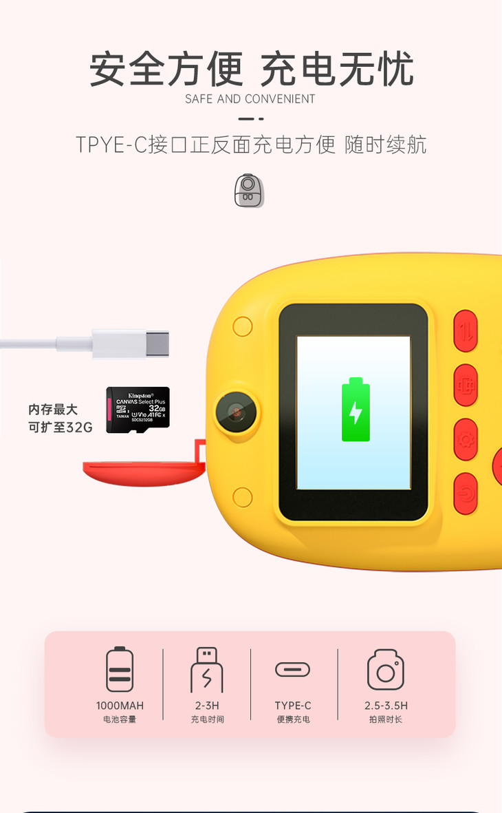 (超值)萌卡丘儿童相机玩具可拍照可打印拍立得照相机数码高清旅游礼物