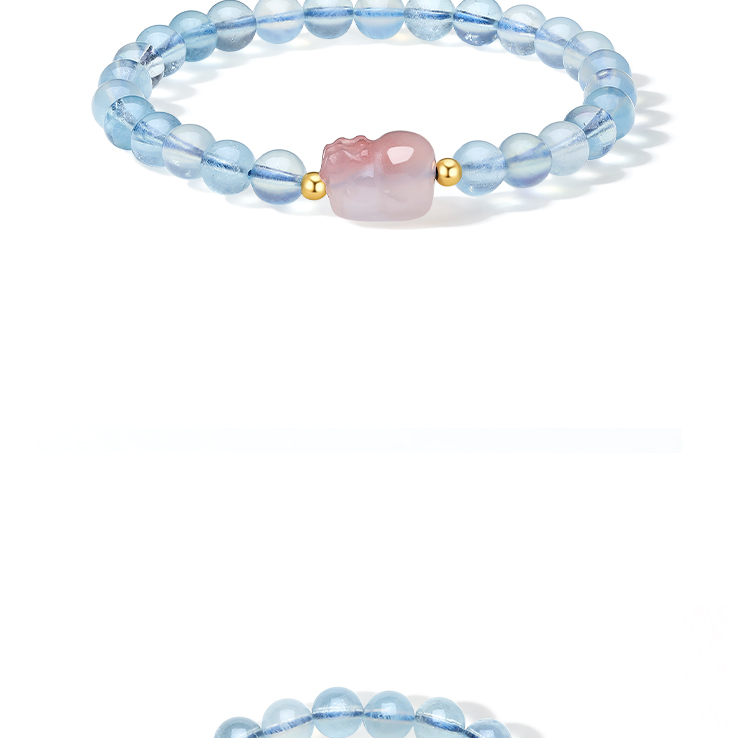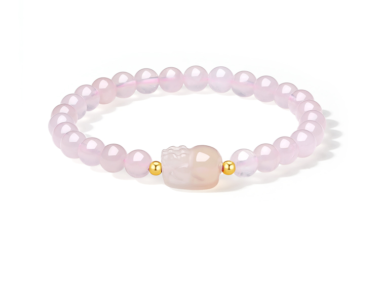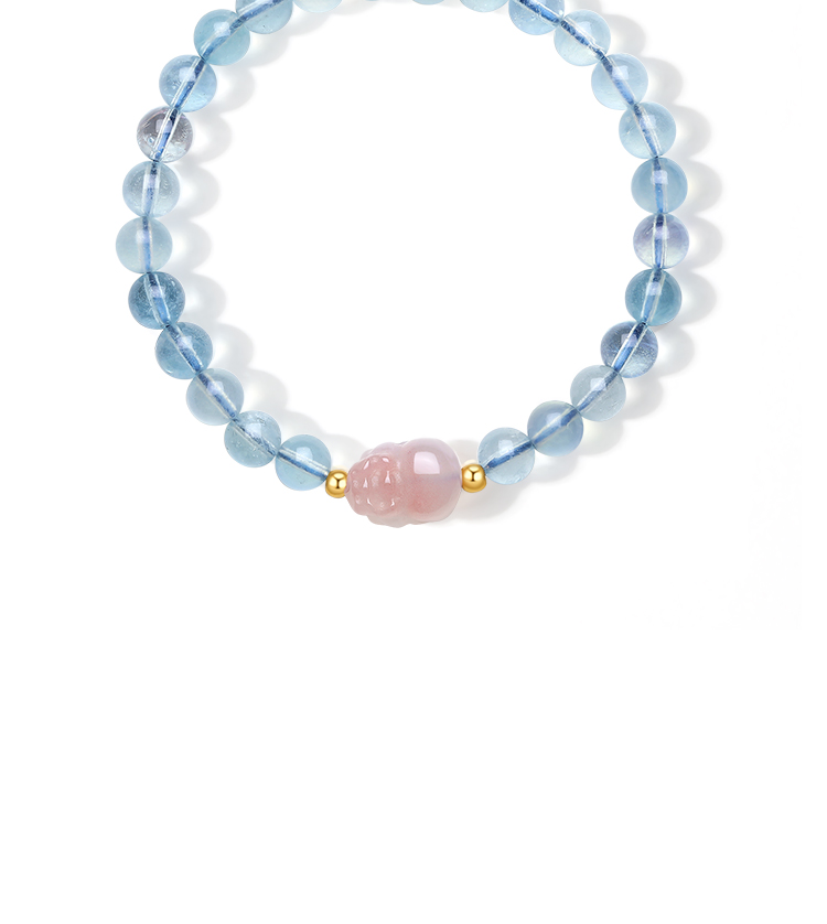 周六福黄18K金貔貅手串女金珠手饰多彩金Au750甜美时尚送女友礼物