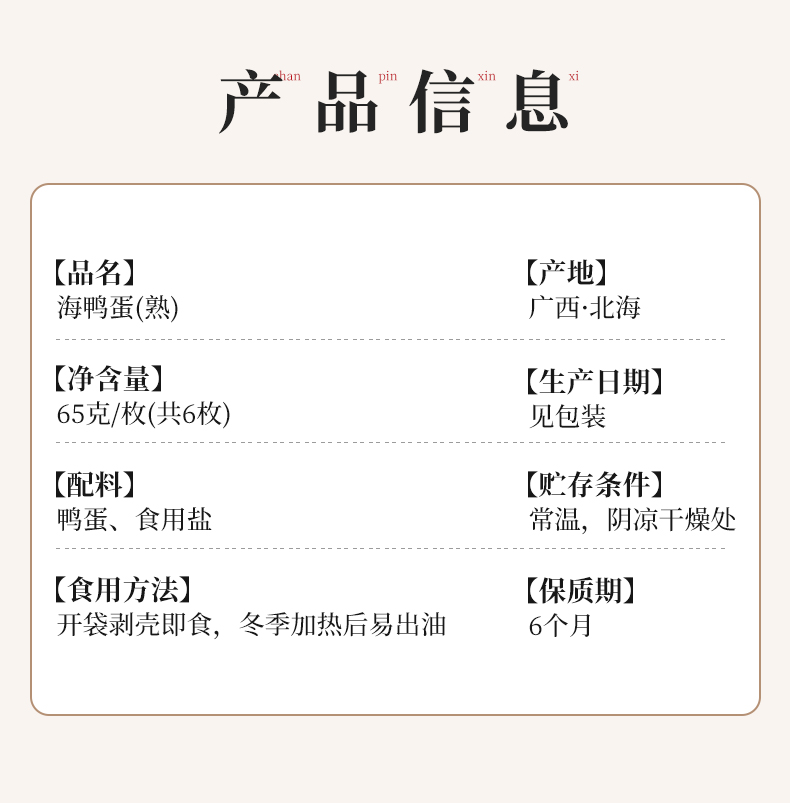 红树林海咸鸭蛋65克*6枚