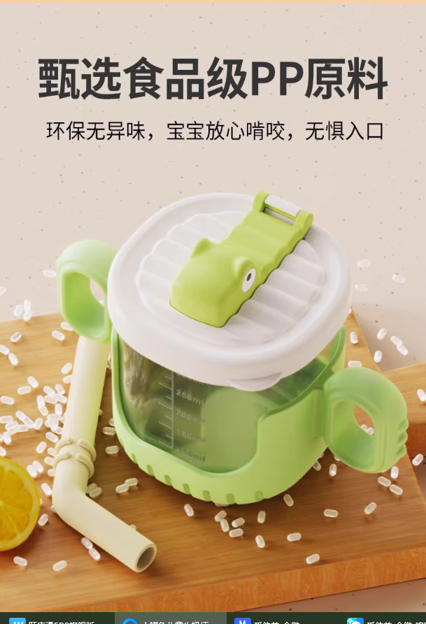 Z4754小鳄鱼儿童牛奶杯可微波炉加热喝奶杯带刻度宝宝水杯防摔吸管杯