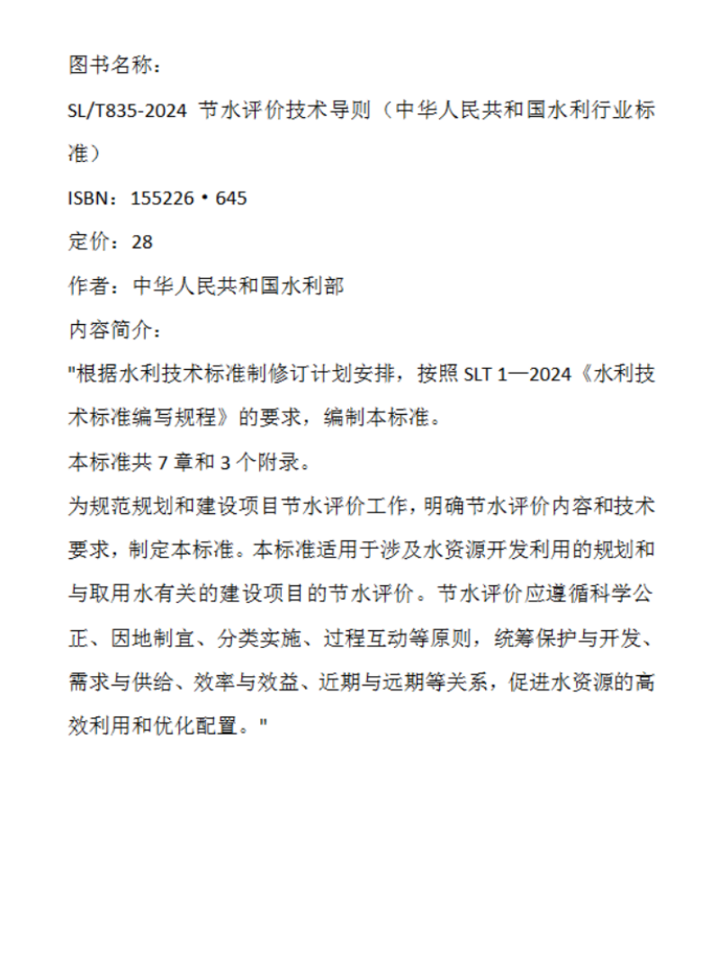 SL/T835-2024节水评价技术导则(中华人民共和国水利行业标准)