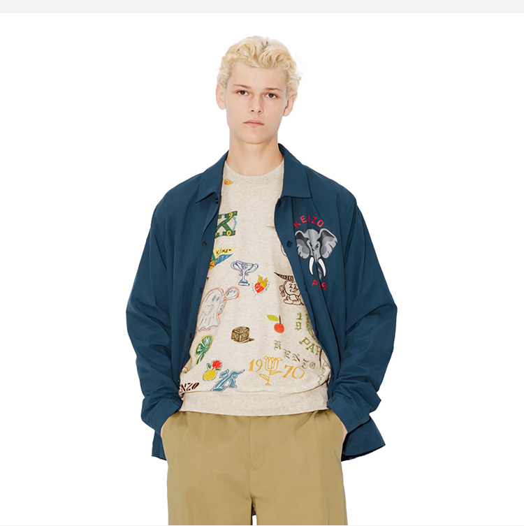 KENZO 高田贤三 男士大象图案印花教练夹克外套 蓝色 FE55 BL061 9NG 77