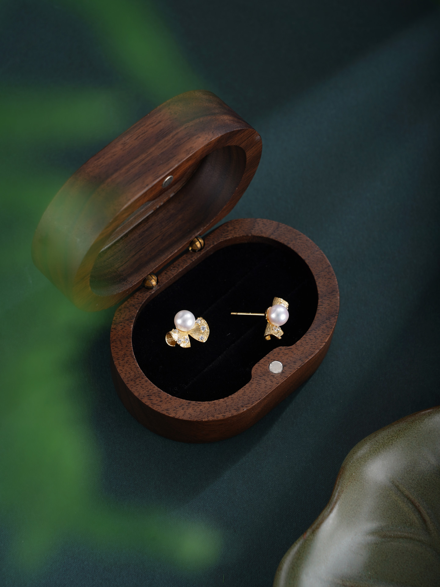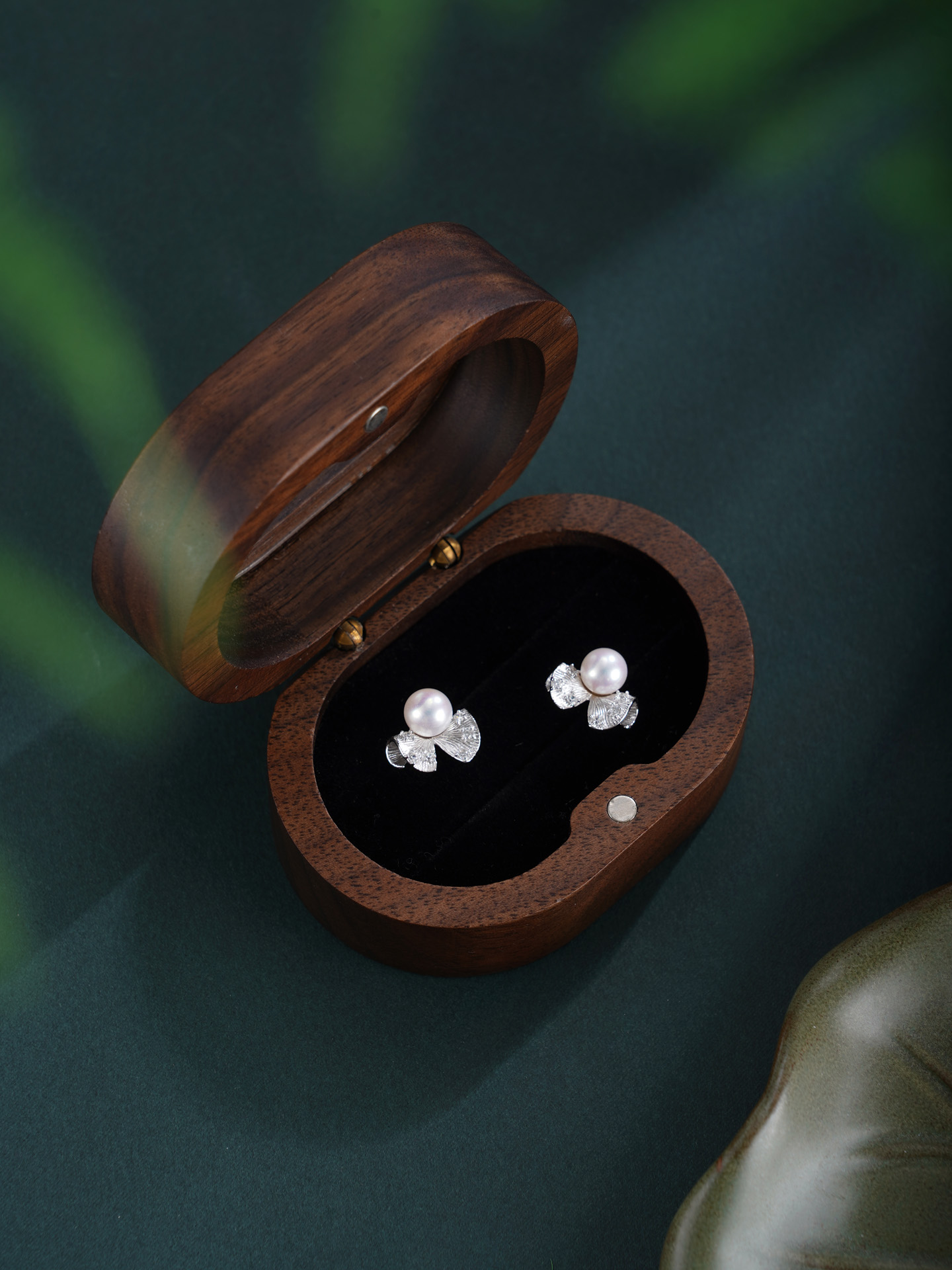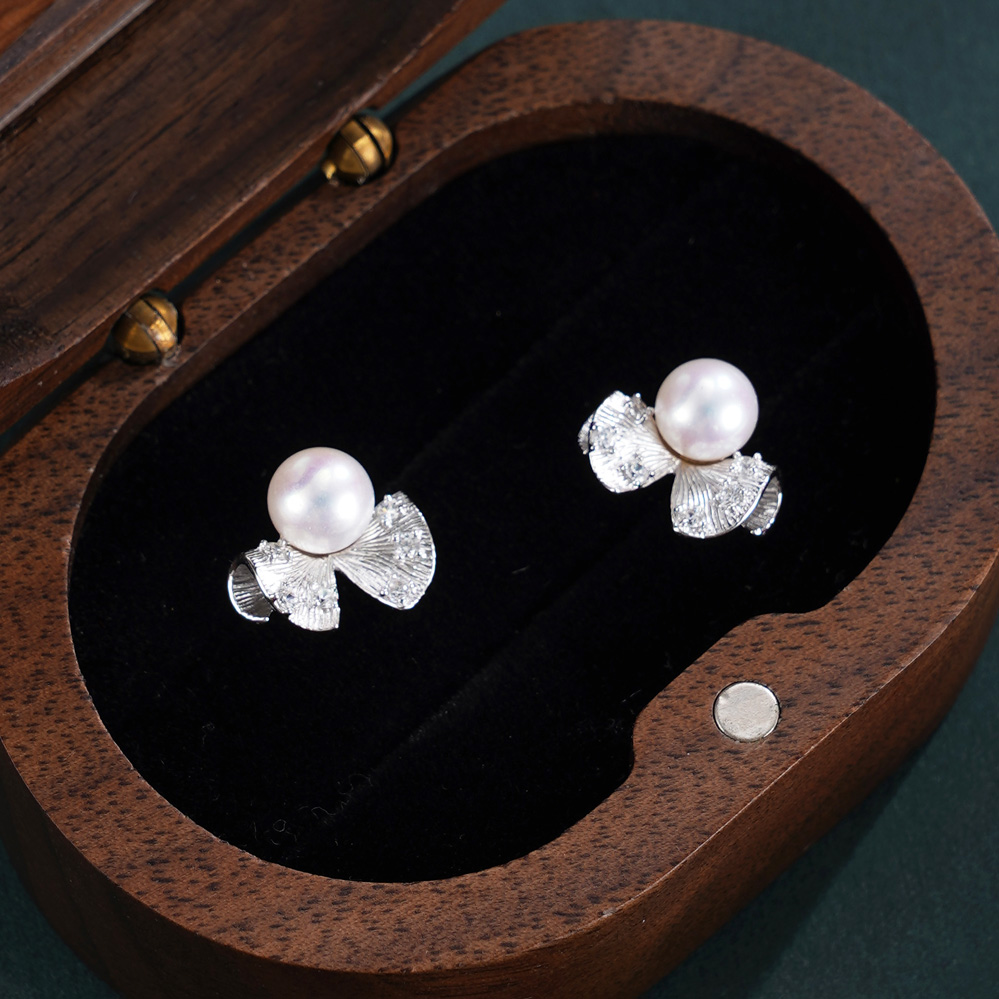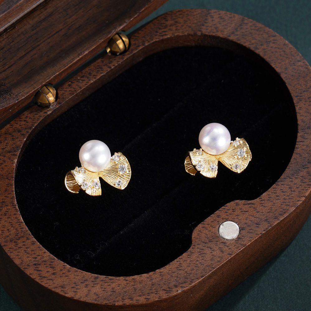 子佩集【小回旋曲】银S925珍珠惜王妃耳钉【E4976】双色蝴蝶结2602