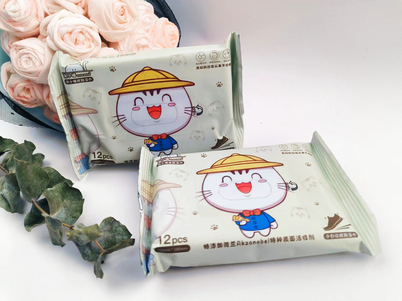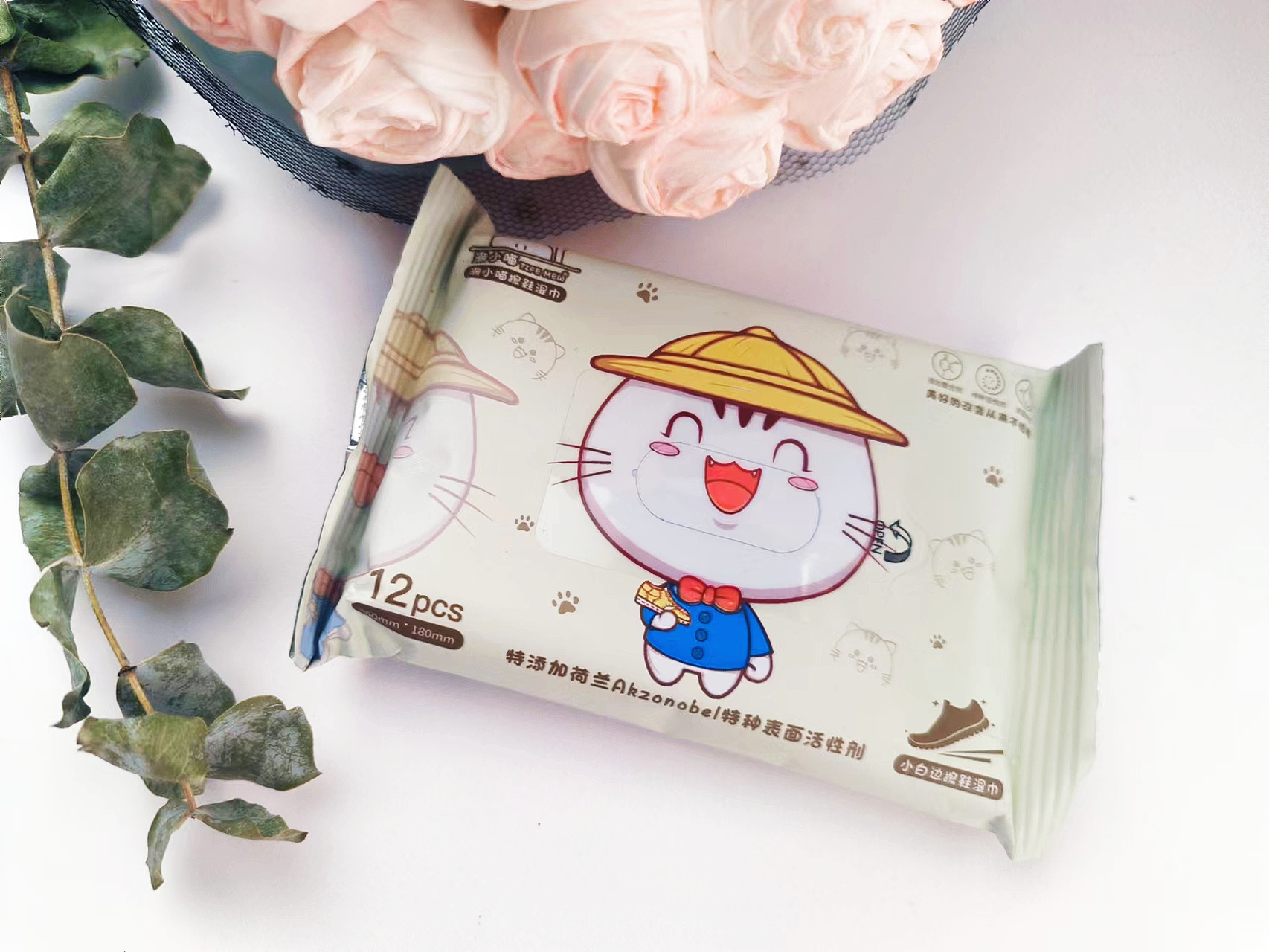 潮小喵小白边擦鞋湿巾12片鞋湿巾小白鞋洗鞋神器小白运动鞋清洁湿纸巾去污一擦白鞋边
