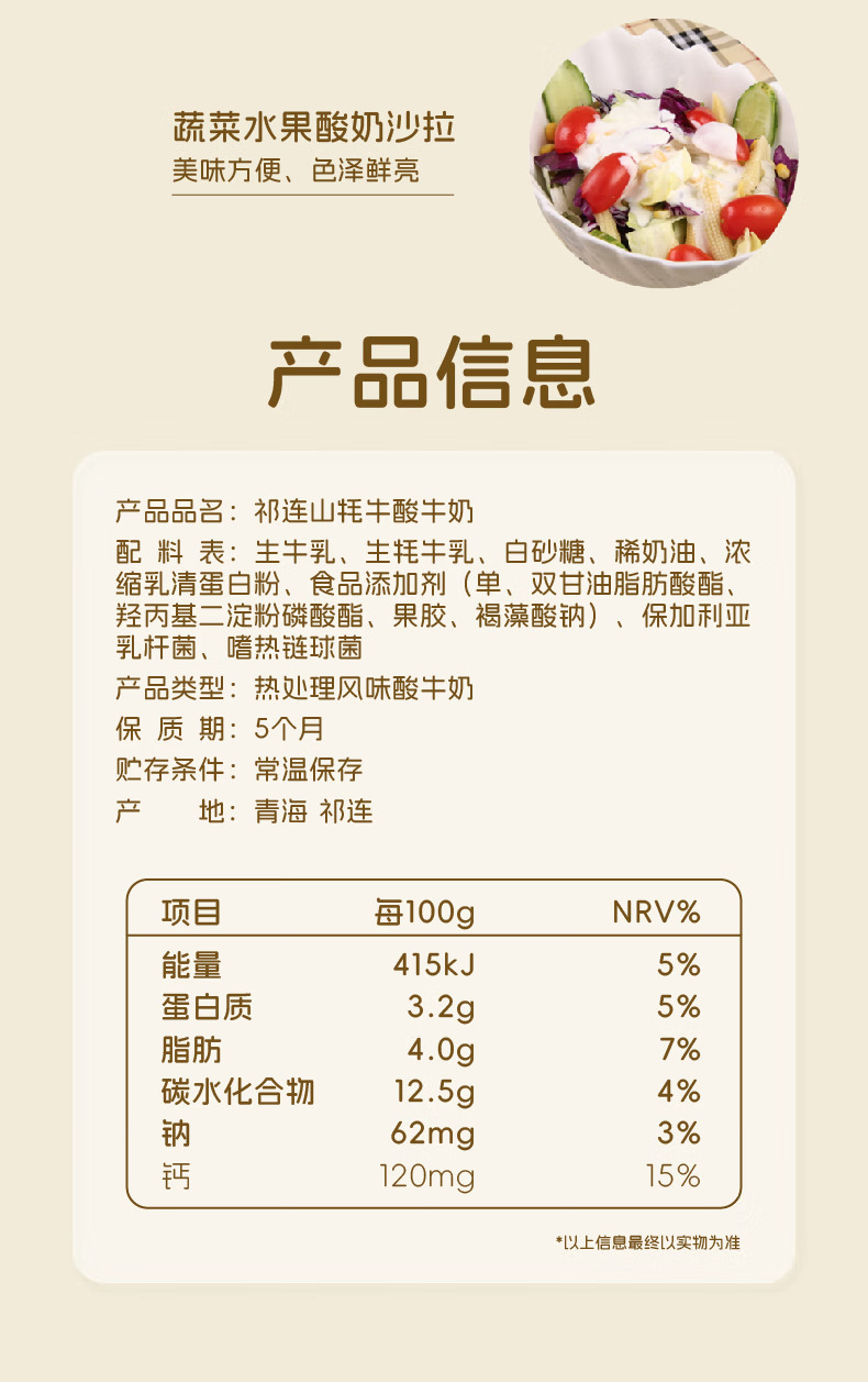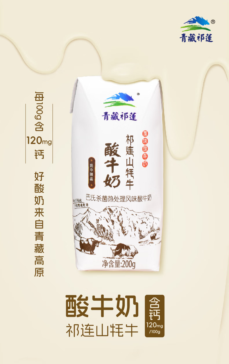 青藏祁莲牦牛奶 祁连山牦牛原味酸奶 200g*12盒