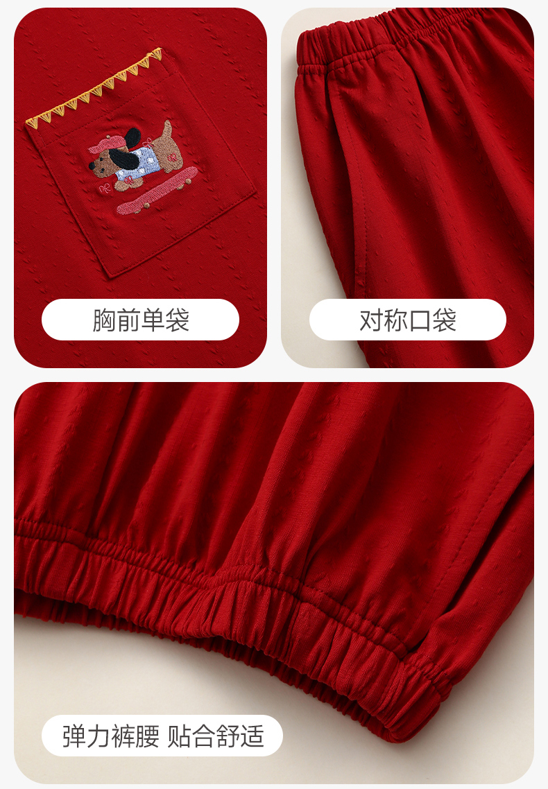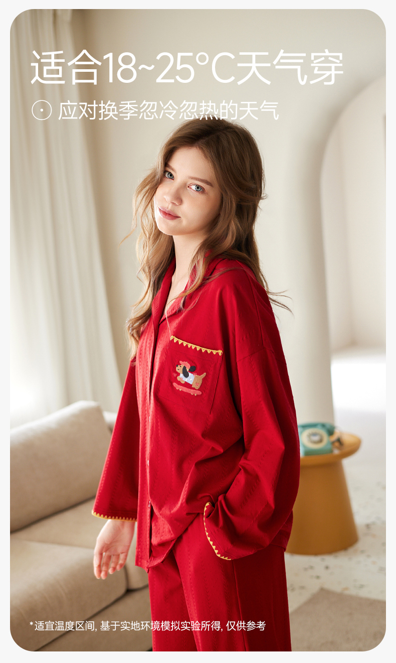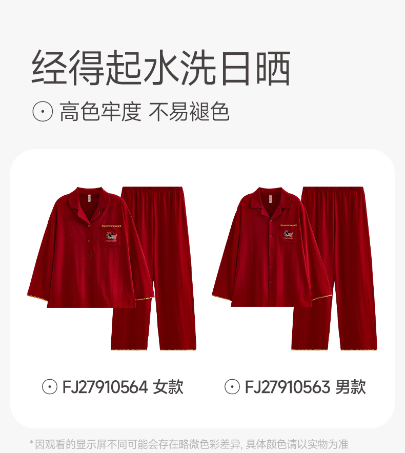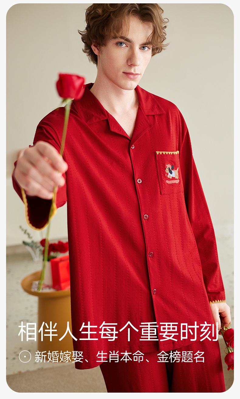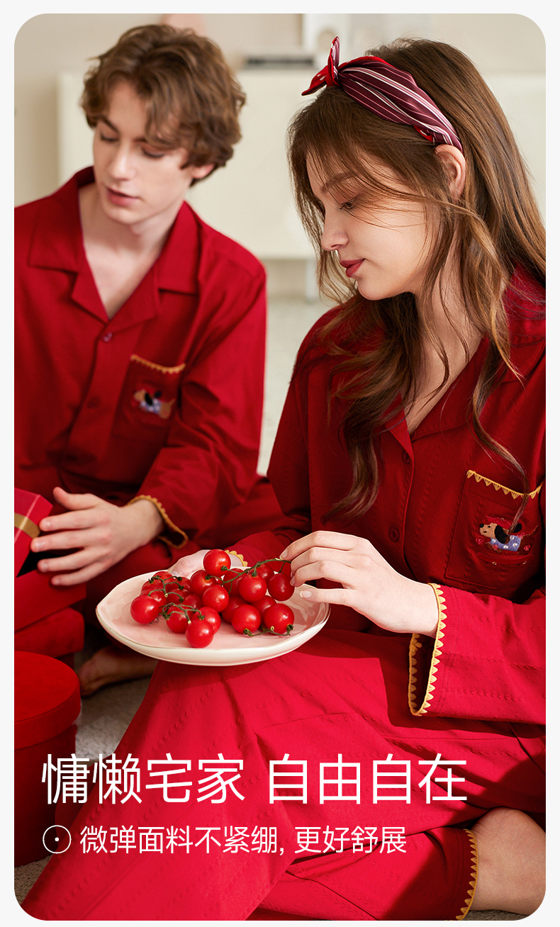 【品牌直发 换季焕新】芬腾情侣睡衣春秋季纯棉长袖套装红色本命年结婚喜庆男女士家居服