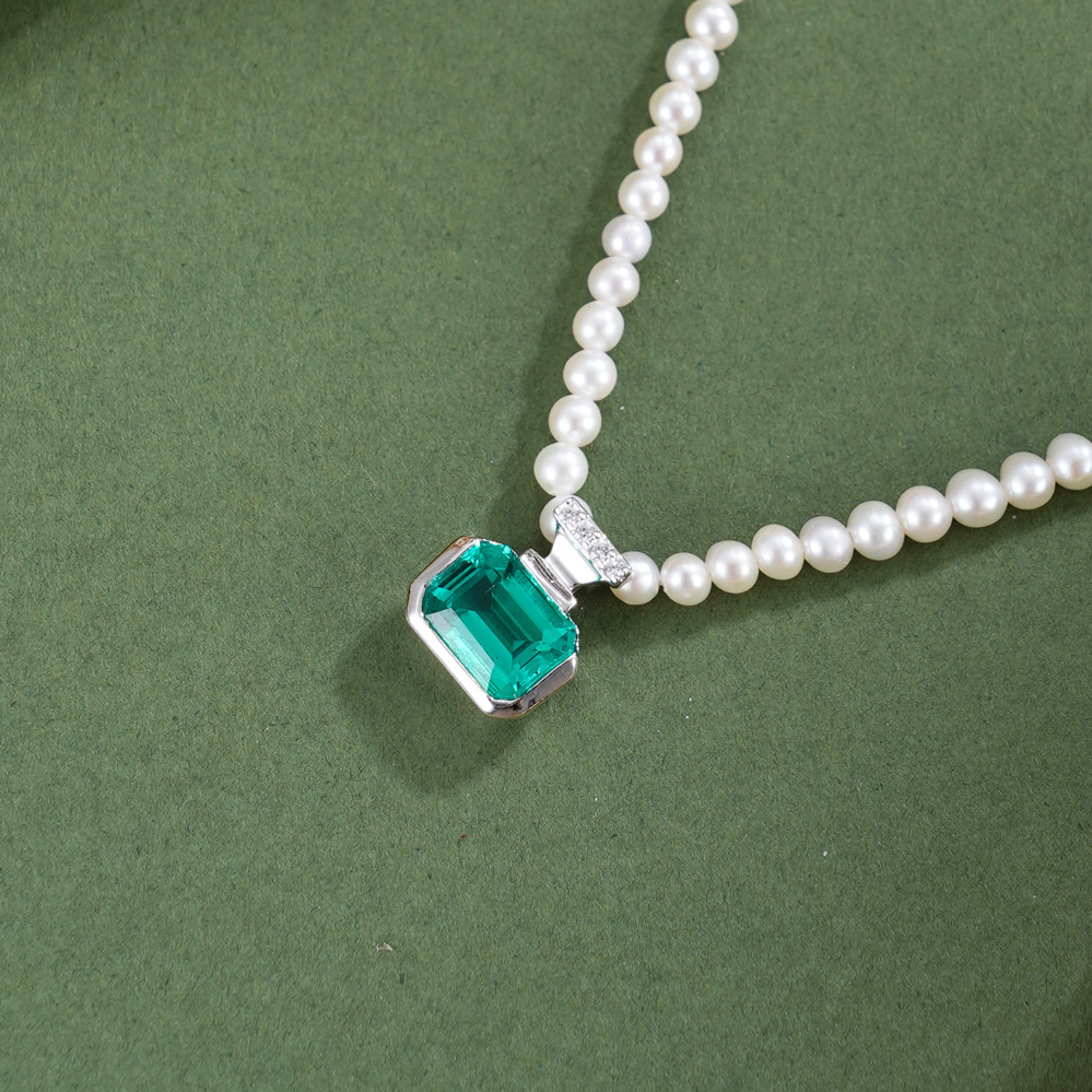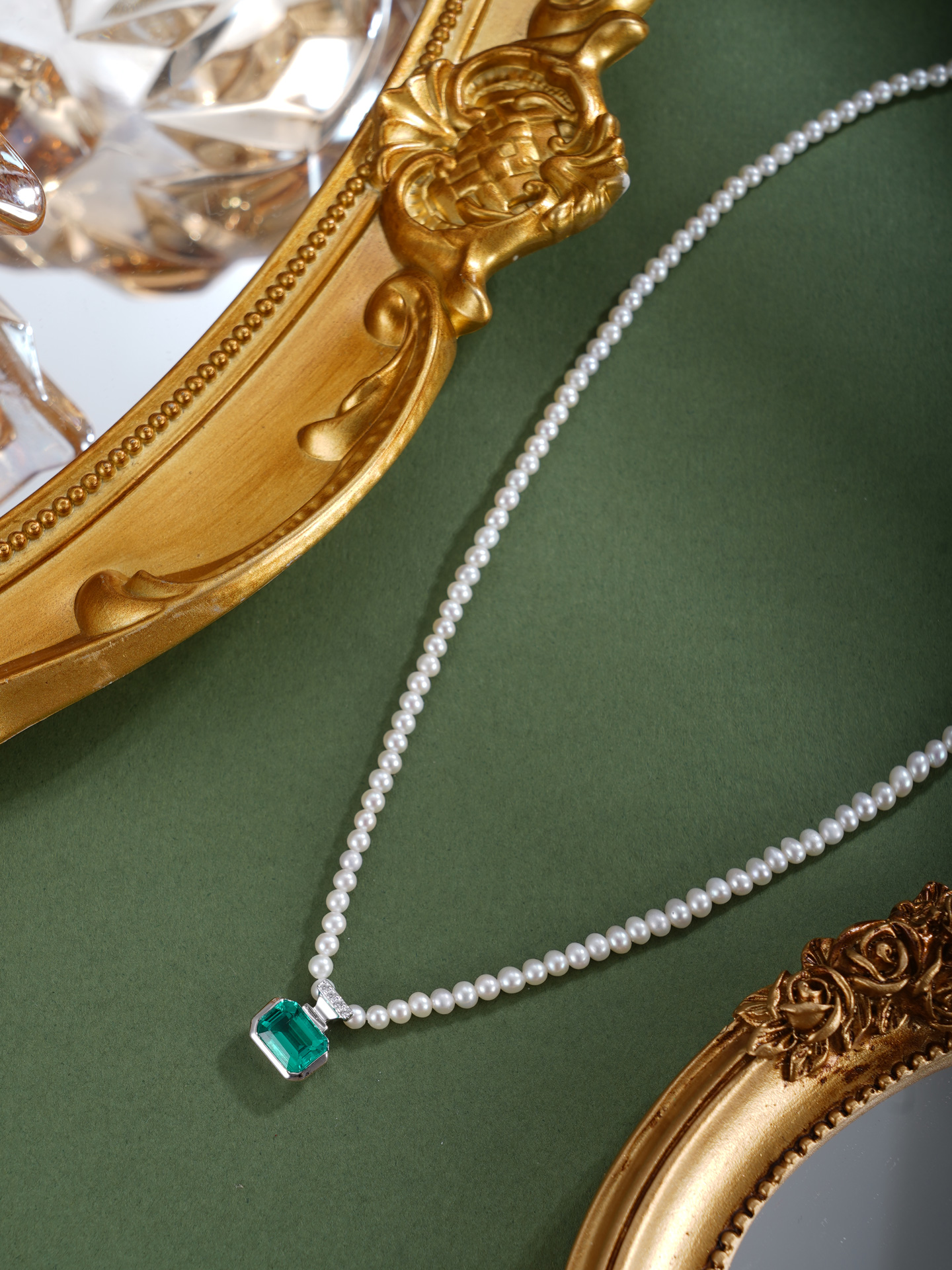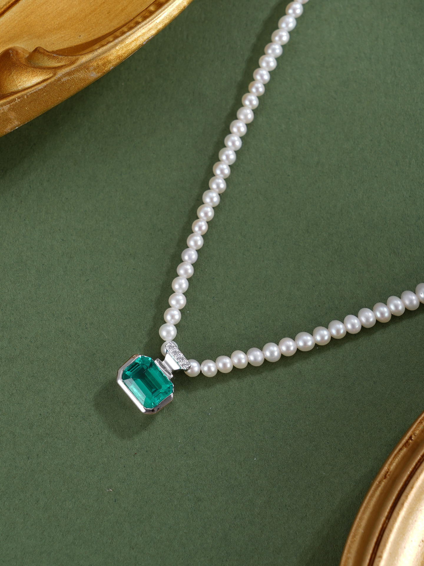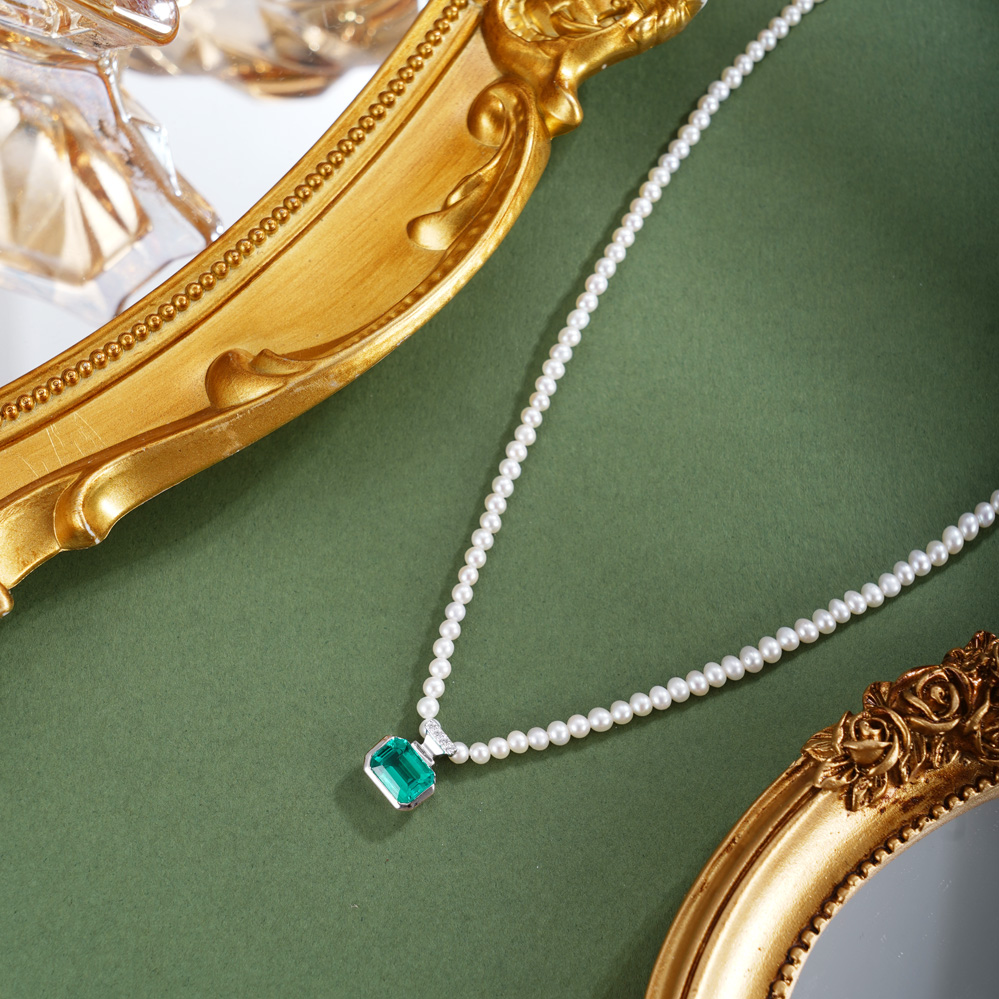 子佩集【青翠微澜】银S925珍珠惜王妃项链【ZZXL013】2.8mm珠绿方块2601