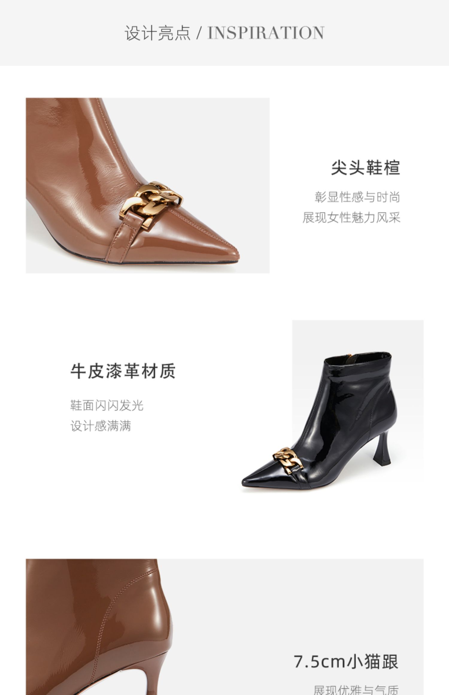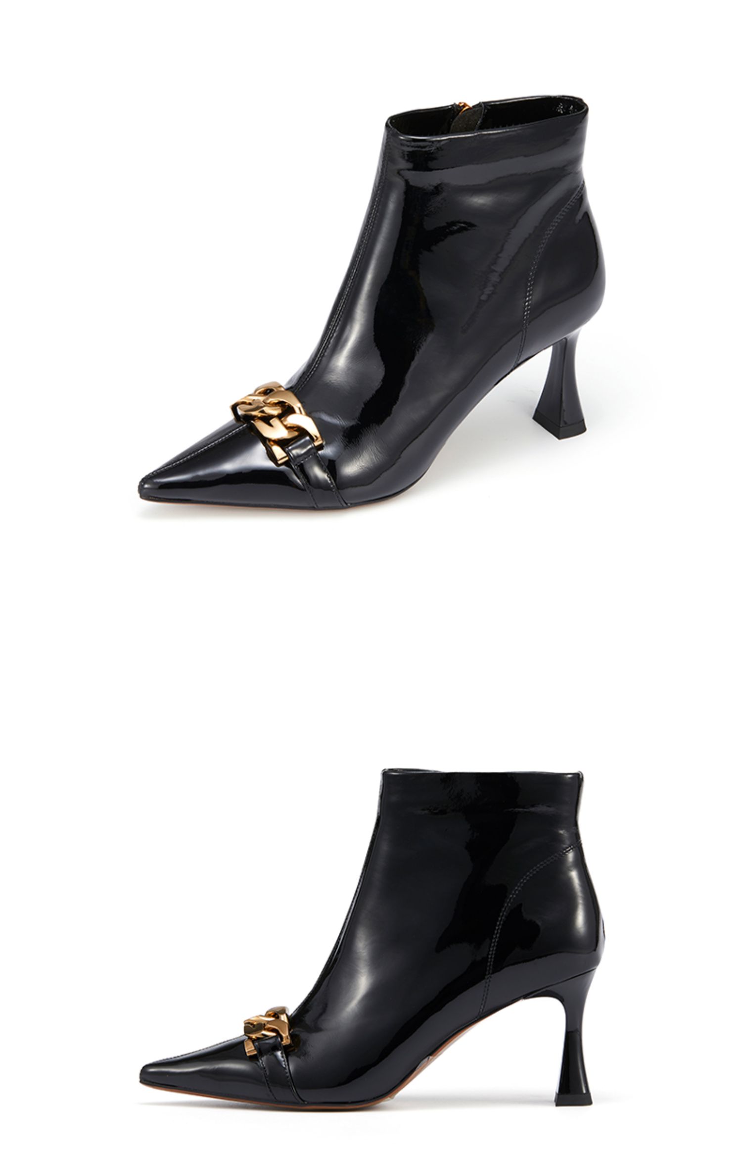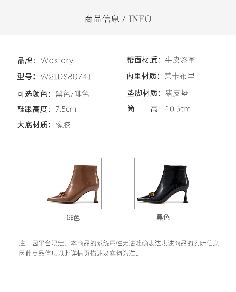 westory2021秋季新款法式复古漆皮亮面细高跟短靴W21DS80741