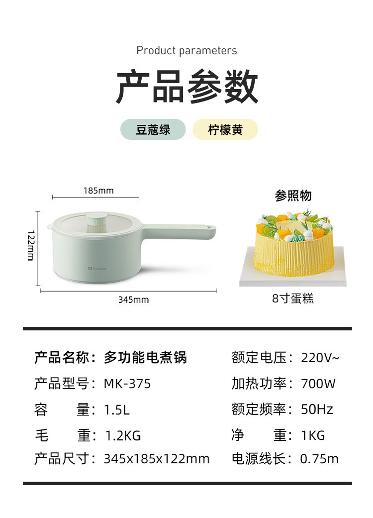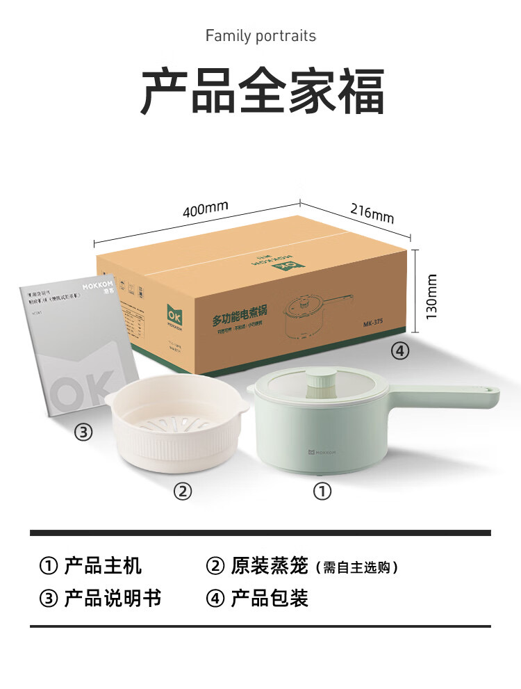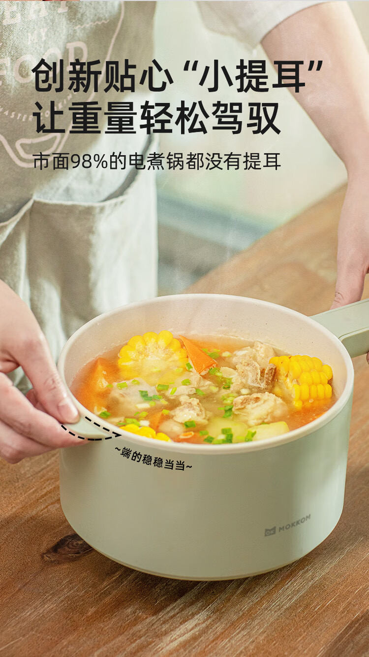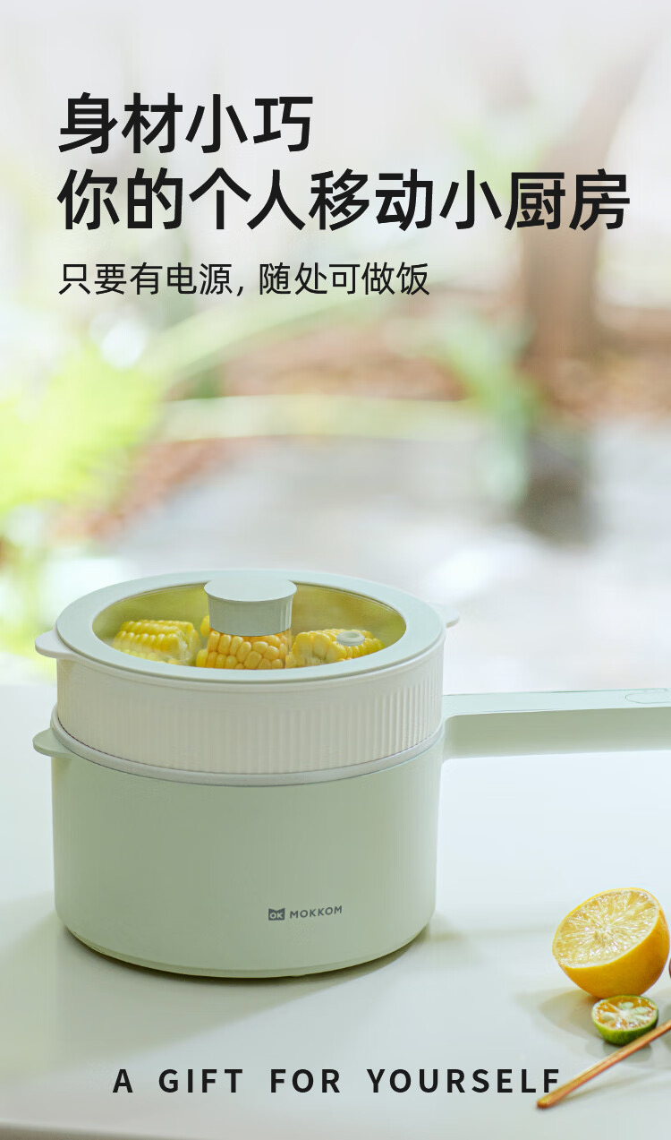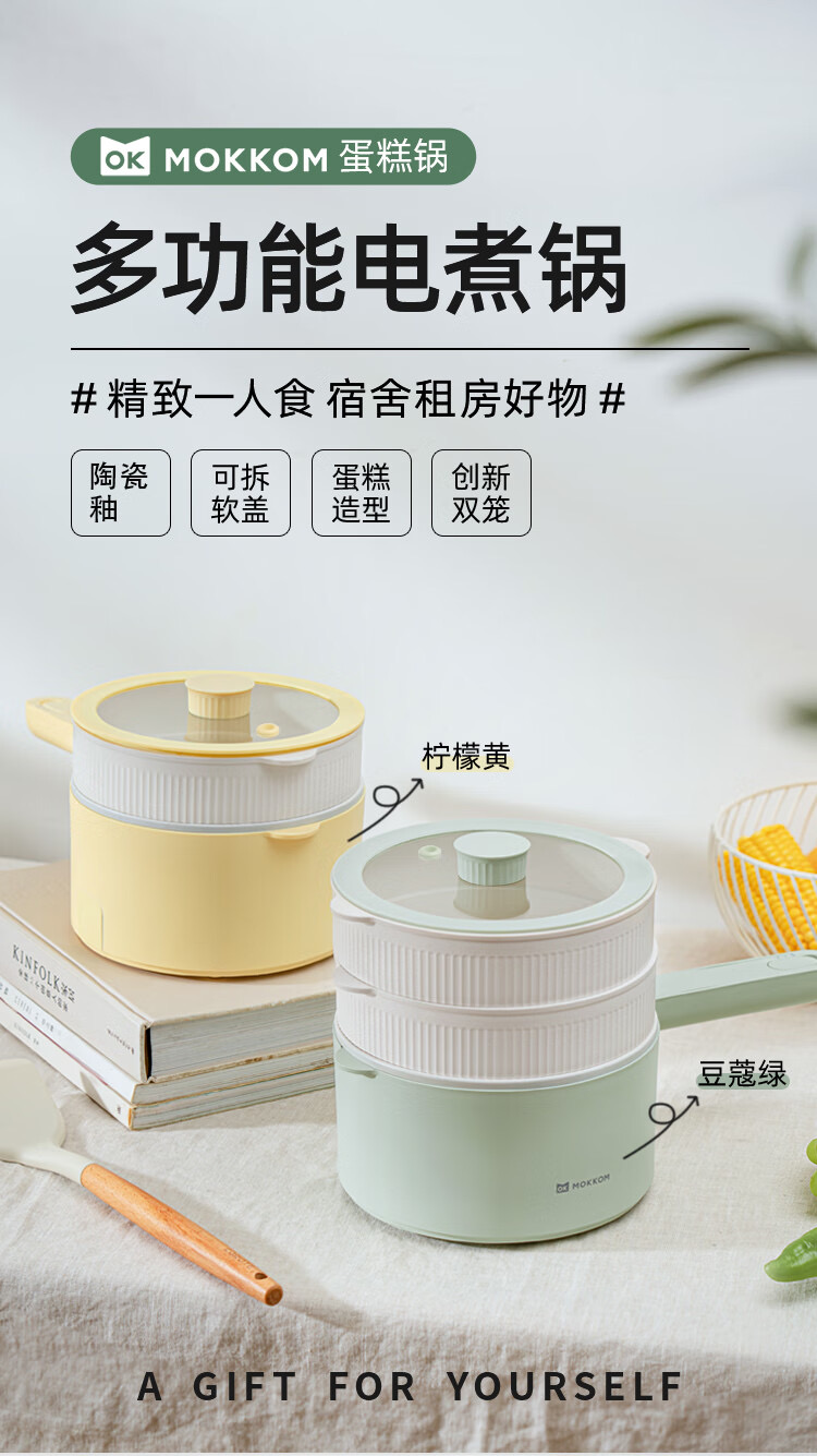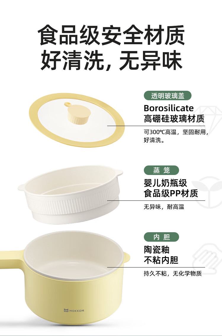 mokkom 磨客多功能小电锅 配蒸笼 黄色陶瓷釉内胆加蒸笼