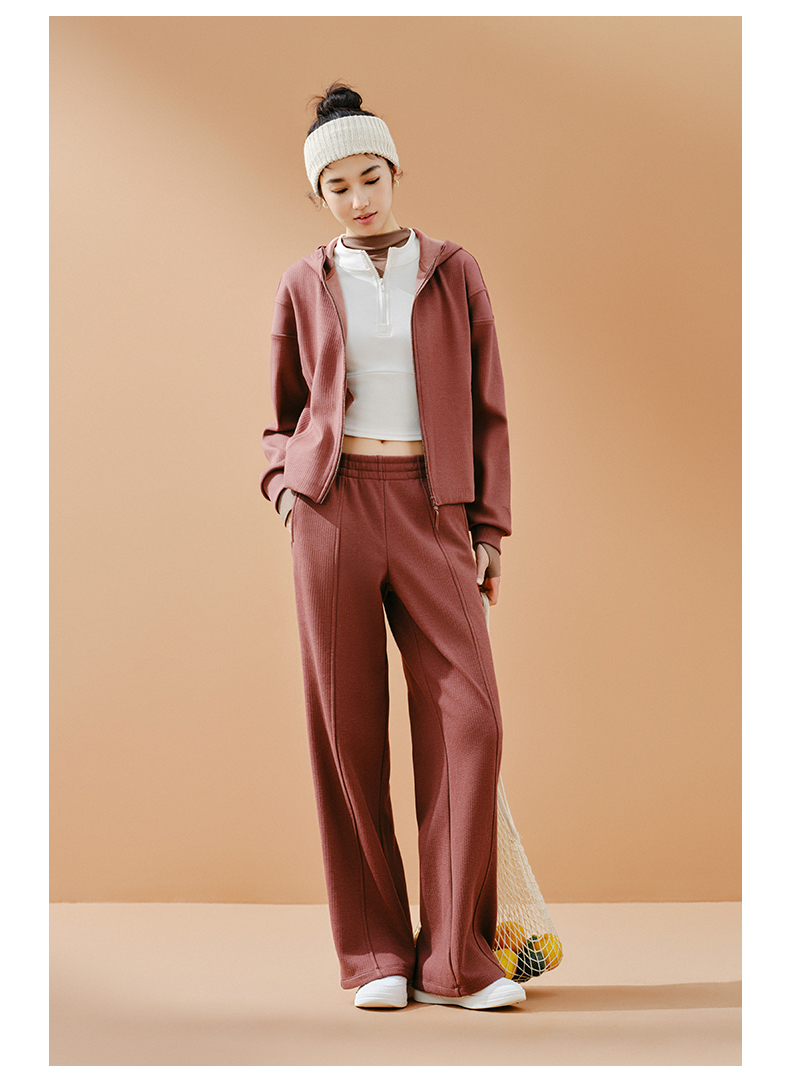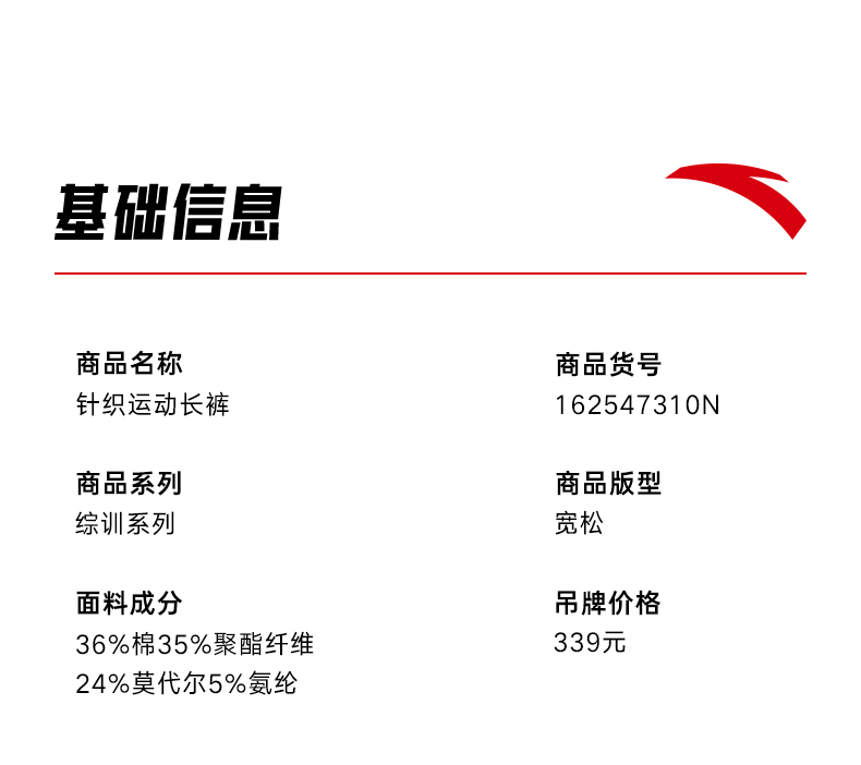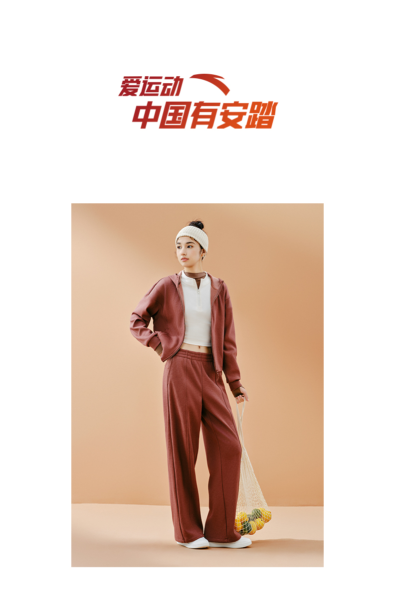 安踏女式休闲阔腿提花加绒弯刀运动长裤162547310N