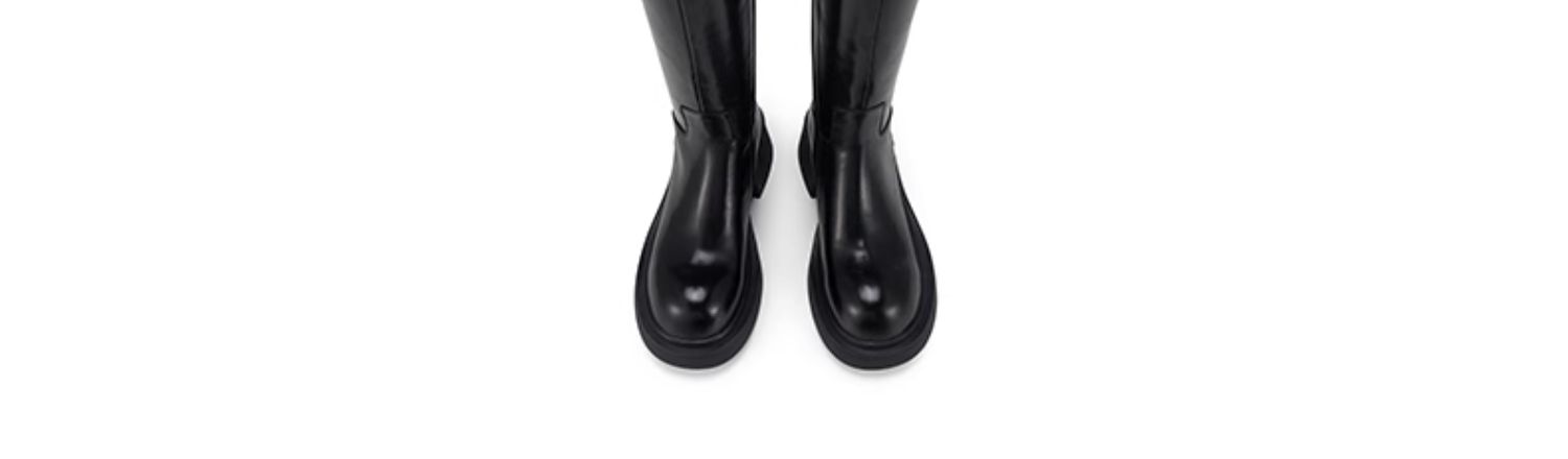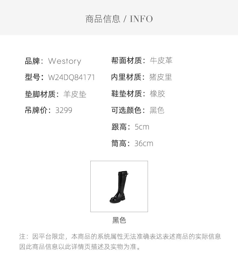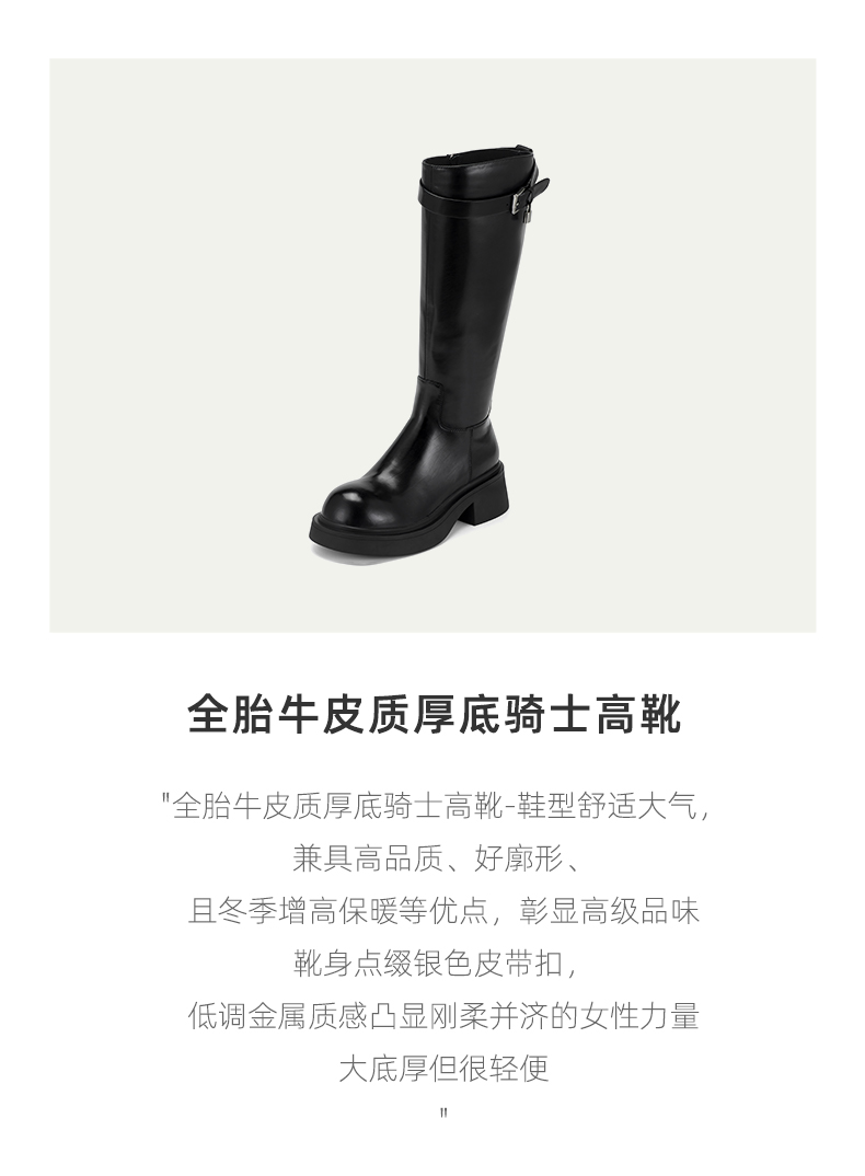 westory2024秋冬新款时尚百搭高筒靴真皮厚底骑士靴女W24DQ84171