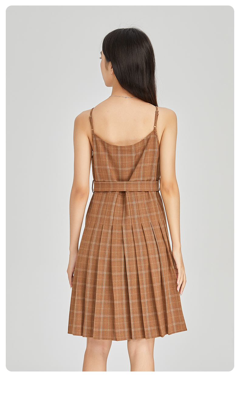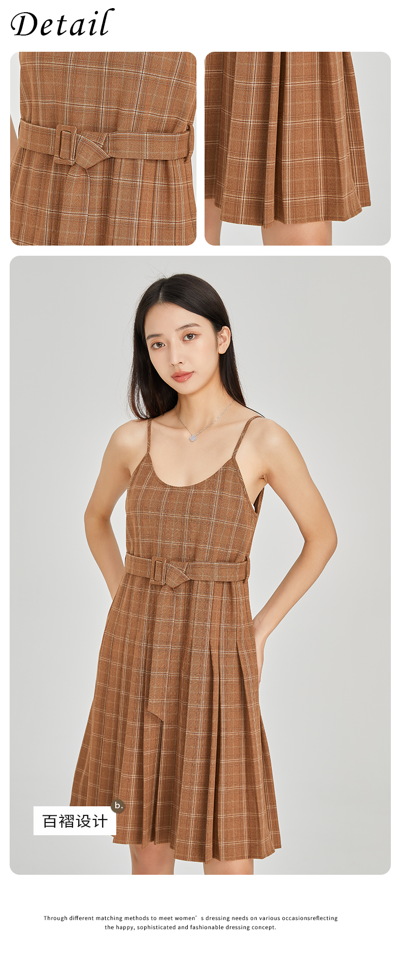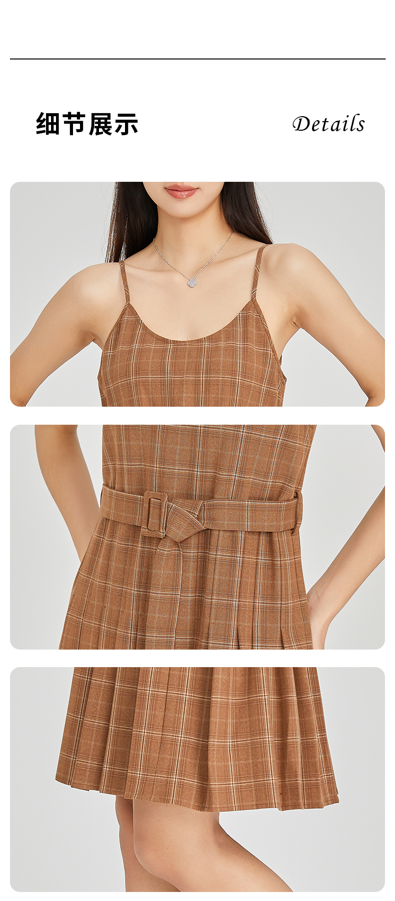 NUTS商场同款春秋季设计感小众气质高腰格子吊带连衣裙313104087B