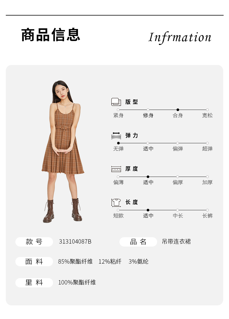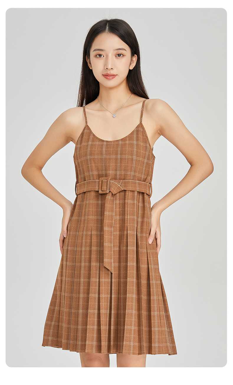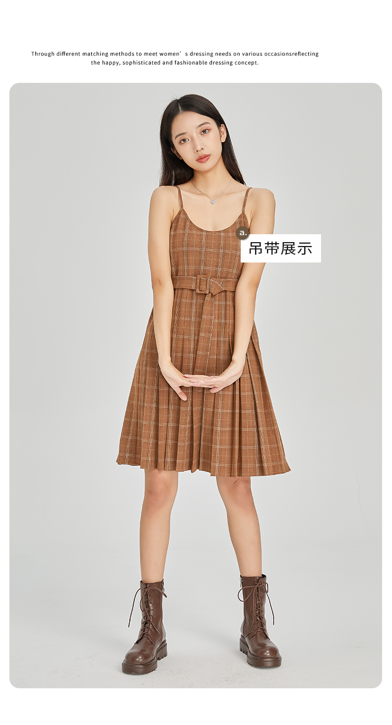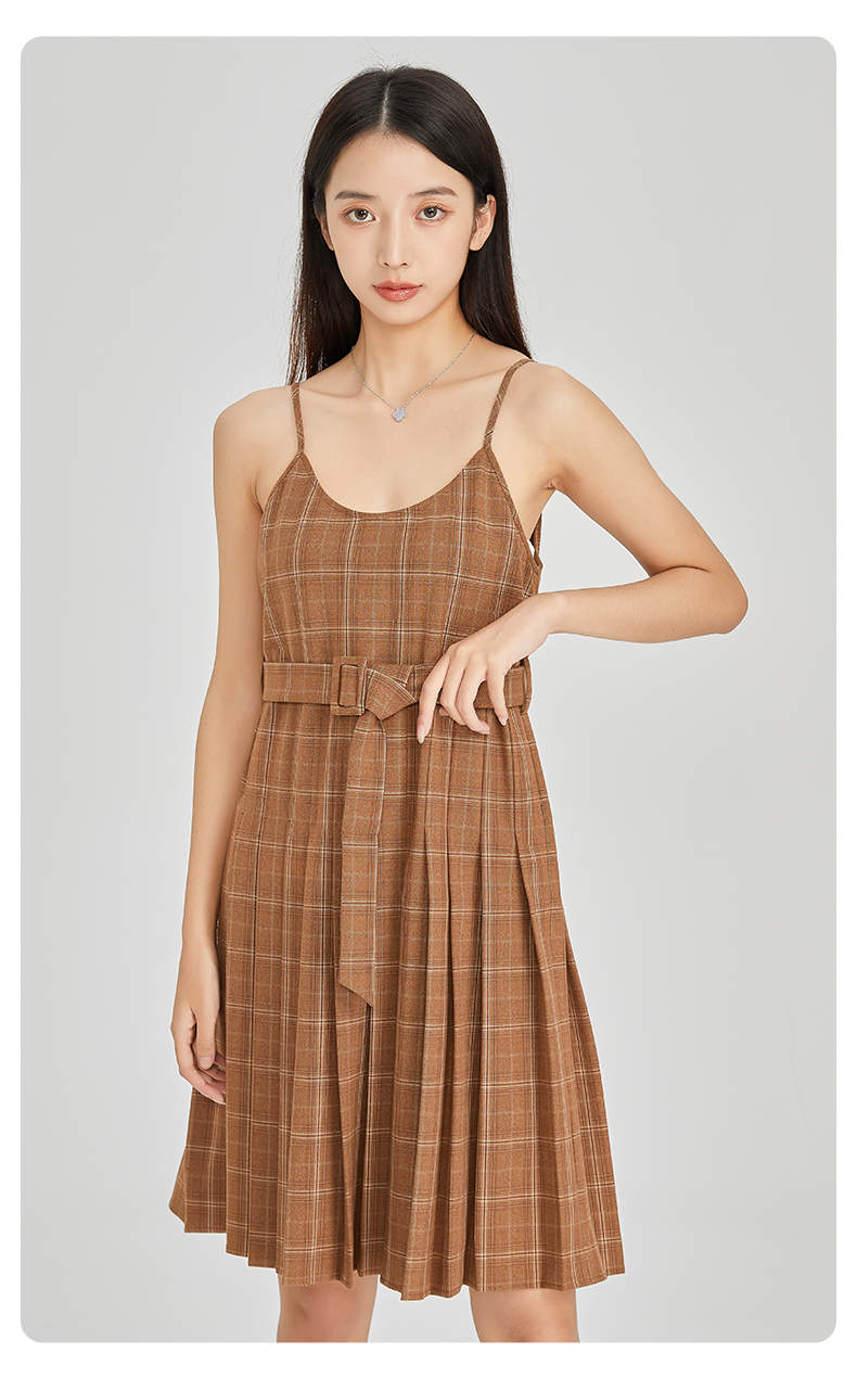 NUTS商场同款春秋季设计感小众气质高腰格子吊带连衣裙313104087B