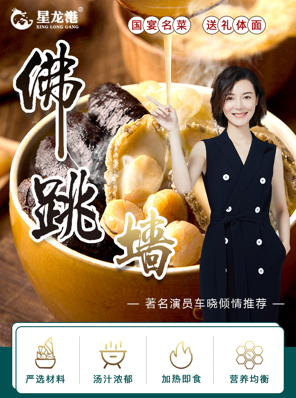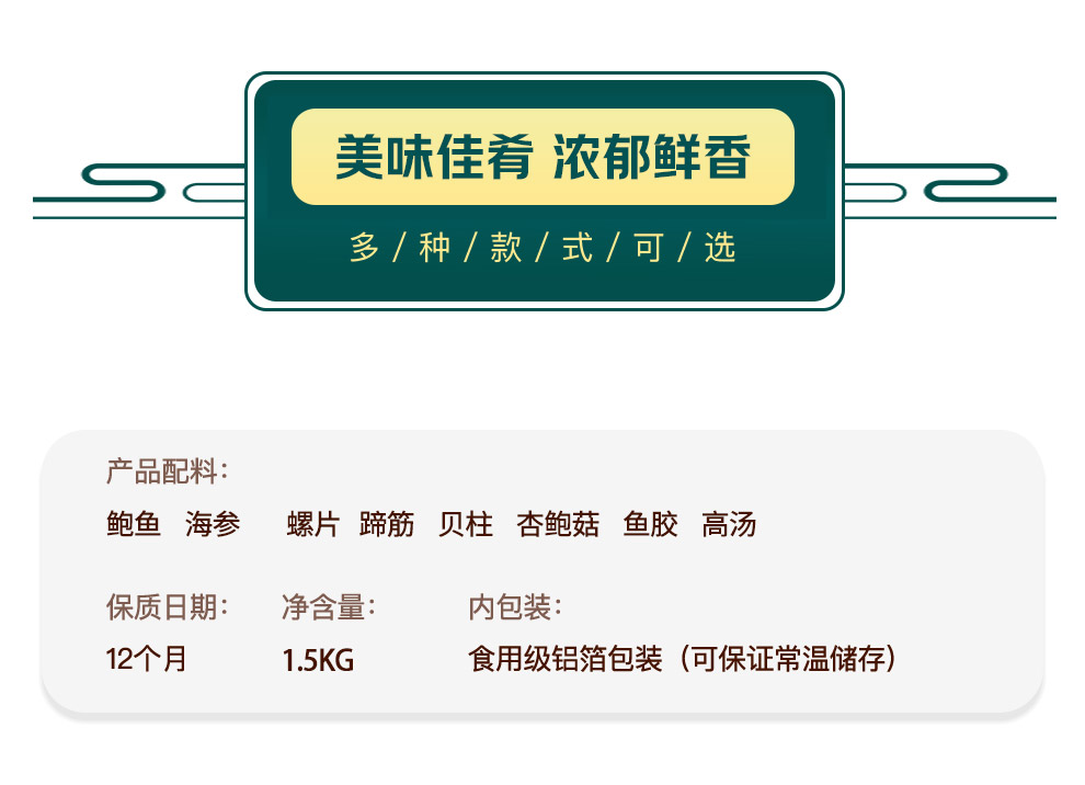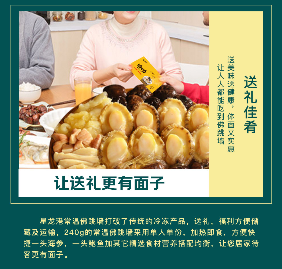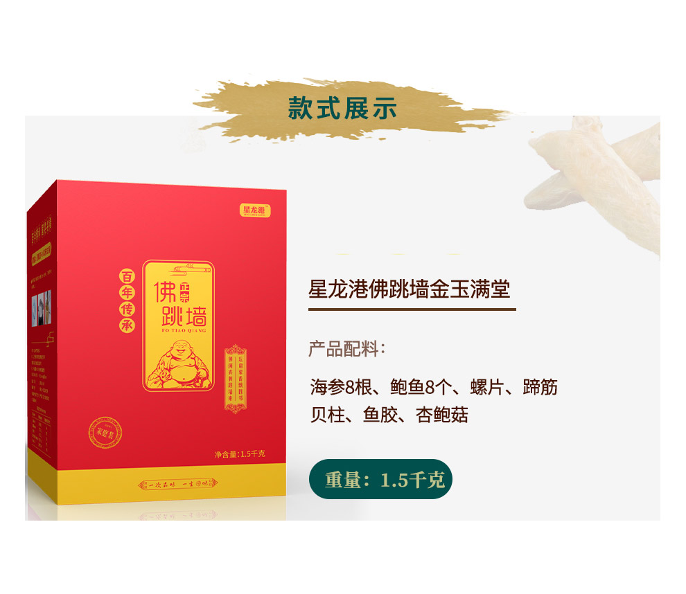 星龙港 佛跳墙礼盒1.5kg 海参8根、鲍鱼8个 螺片,蹄筋 贝柱、鱼胶 杏鲍菇
