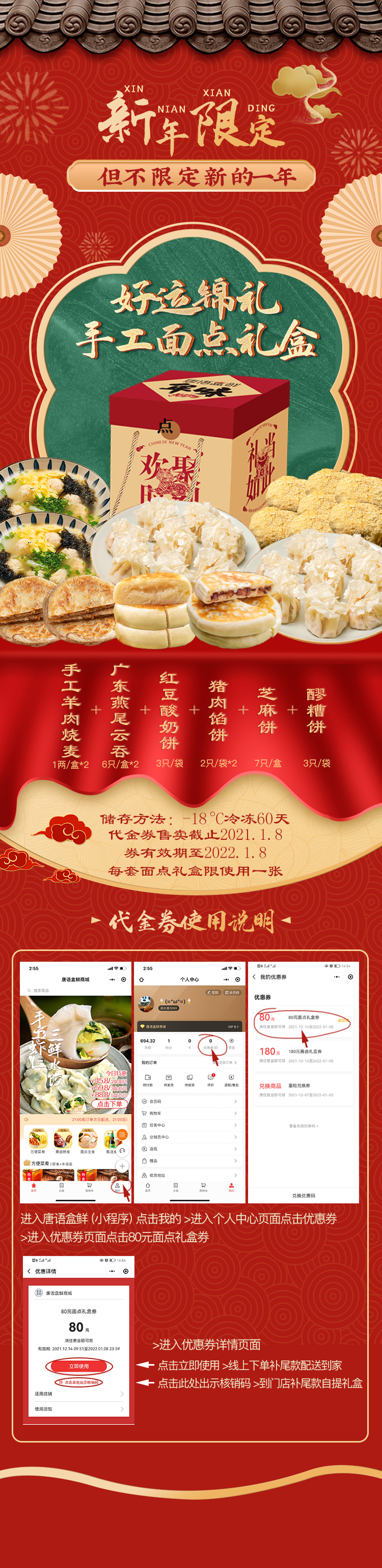 该商品为抵用券,购买完抵用券可至唐语盒鲜商城(详情页最下方关联商品面点礼盒)付尾款