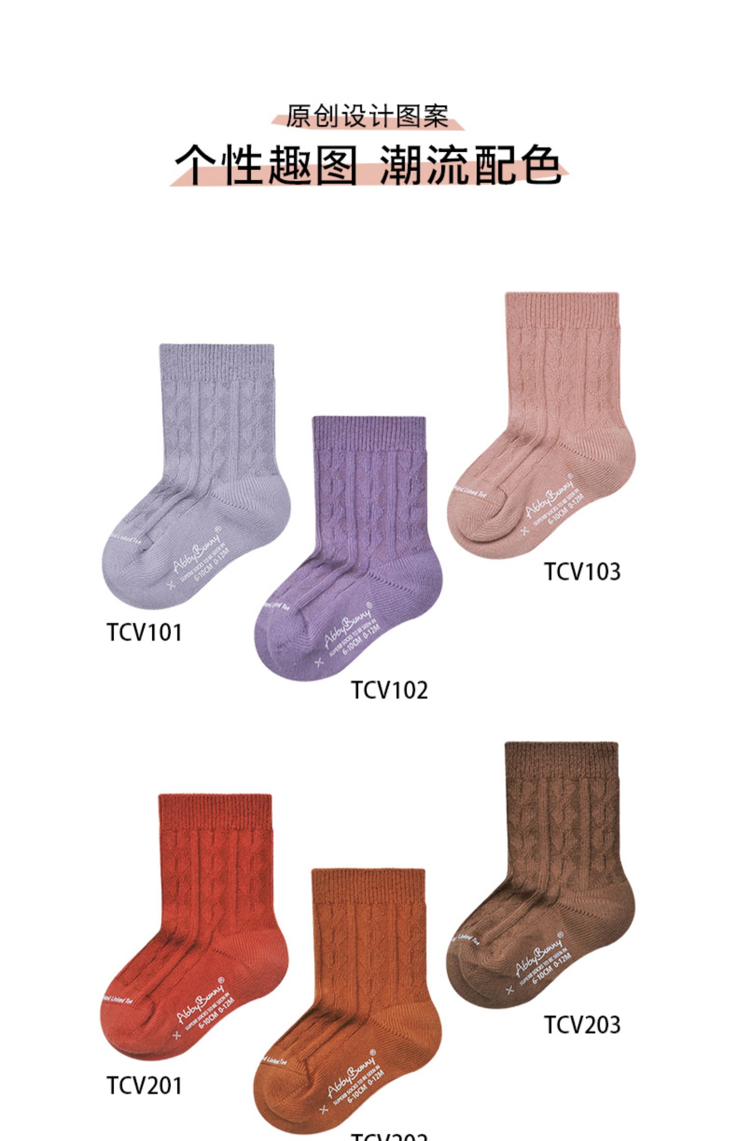 【云优选】AbbyBunny男童袜子潮儿童纯棉袜女童中筒袜新生婴儿宝宝短袜儿童礼物0-12岁儿婴童袜子(拆封后不支持退货,介意慎拍)