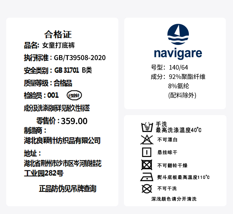 【纳维凯尔】【120-165】意大利小帆船女童秋冬款双面磨毛打底裤