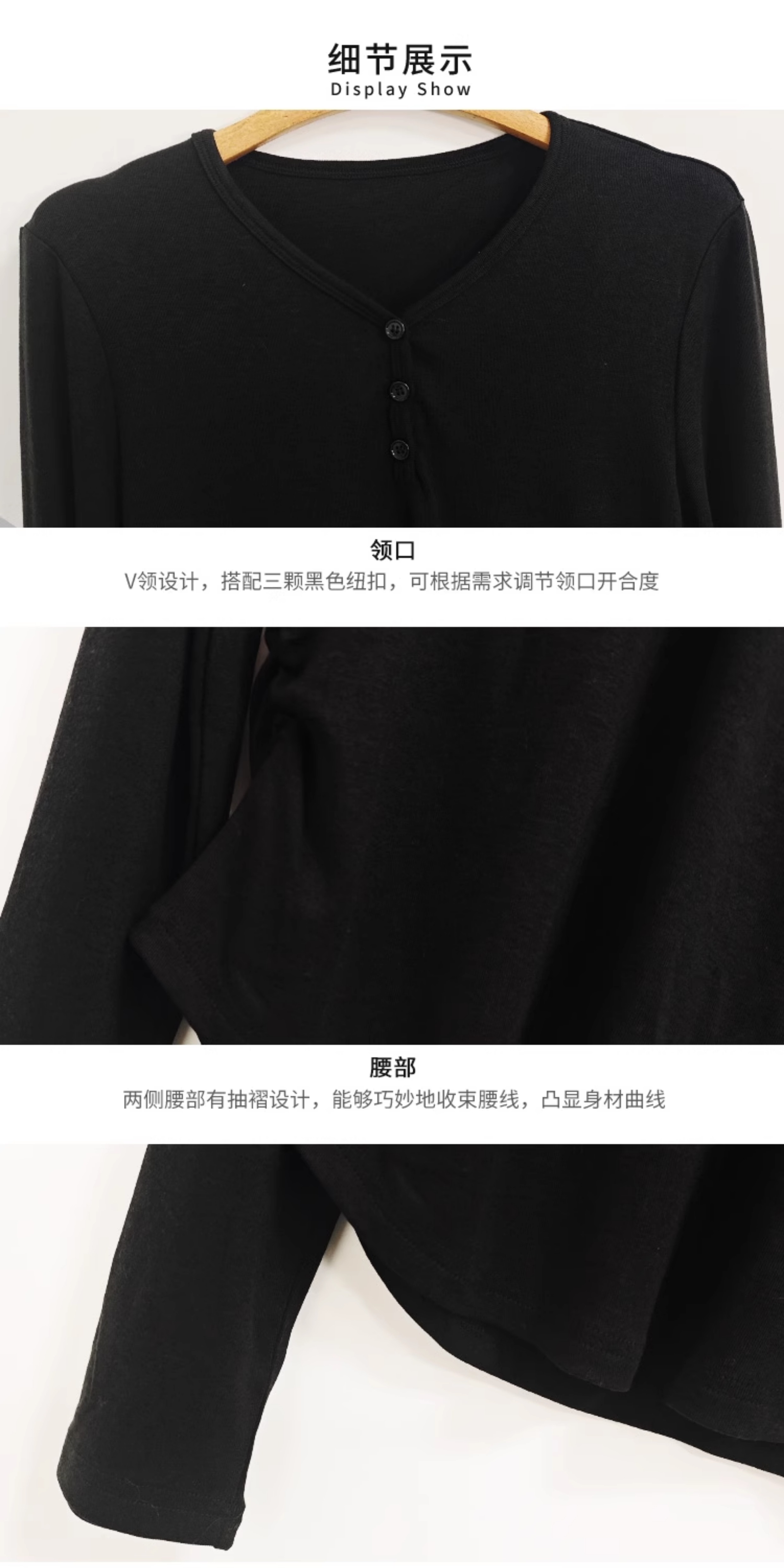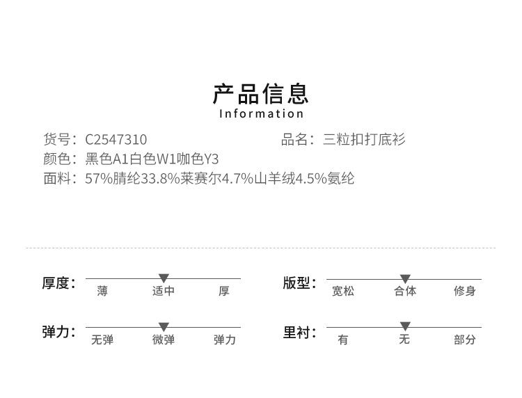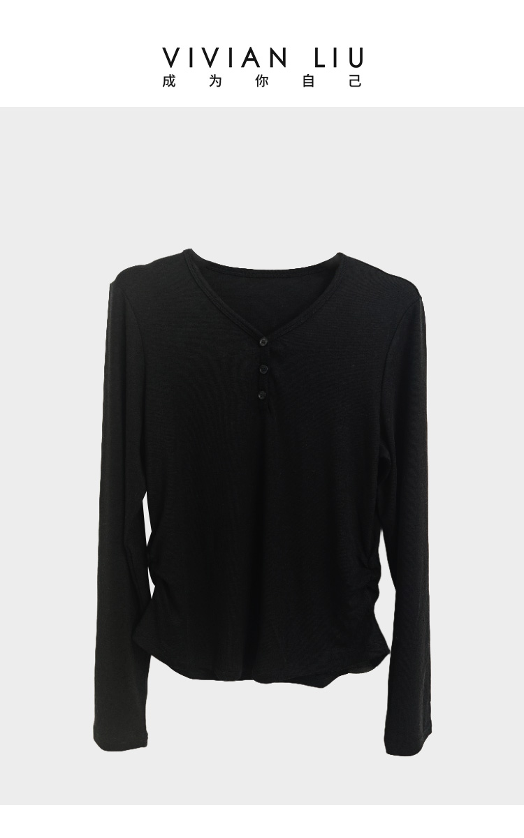VIVIAN LIU薇薇安刘C2547310秋季女装新款V领三粒扣打底衫