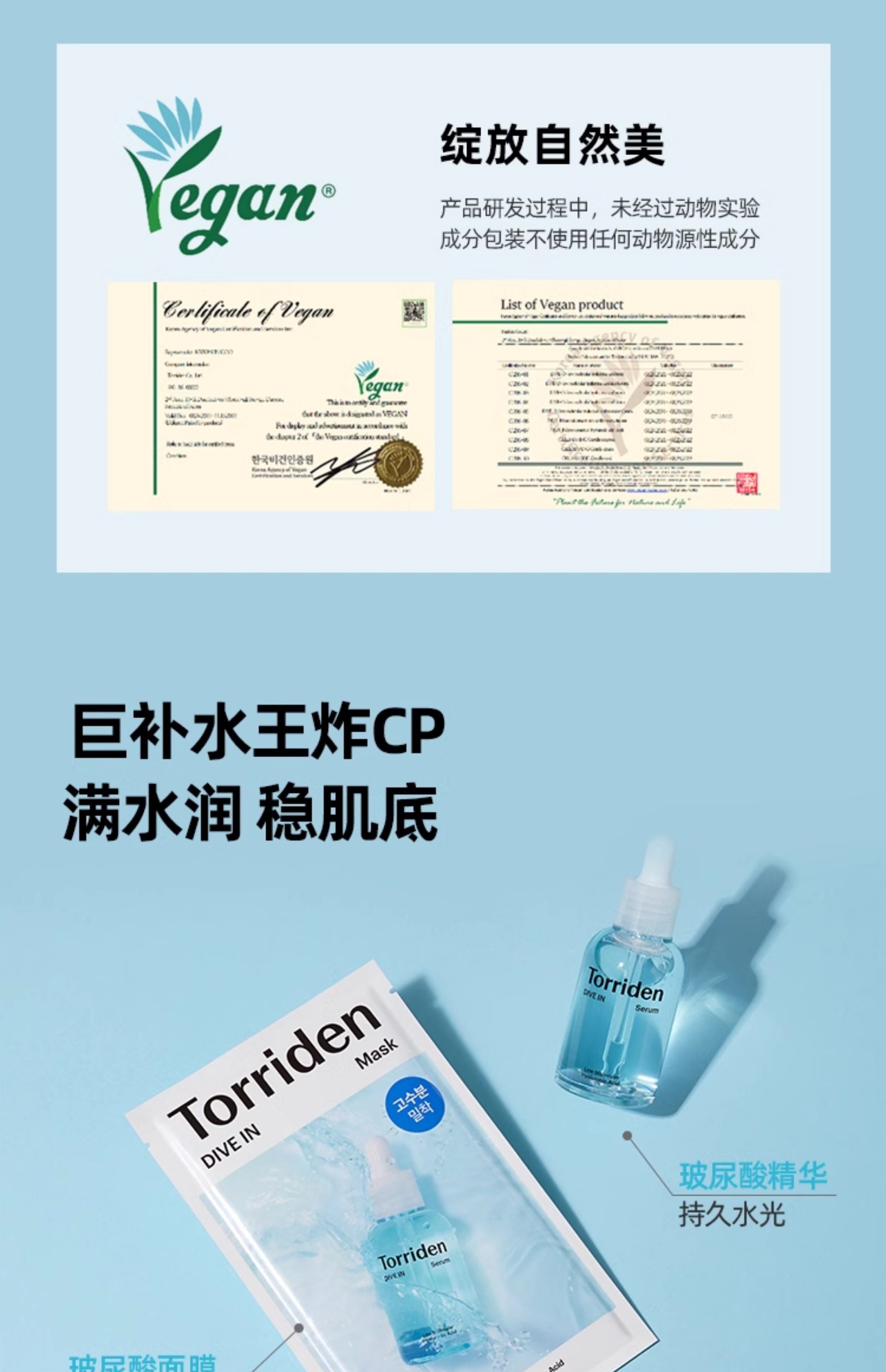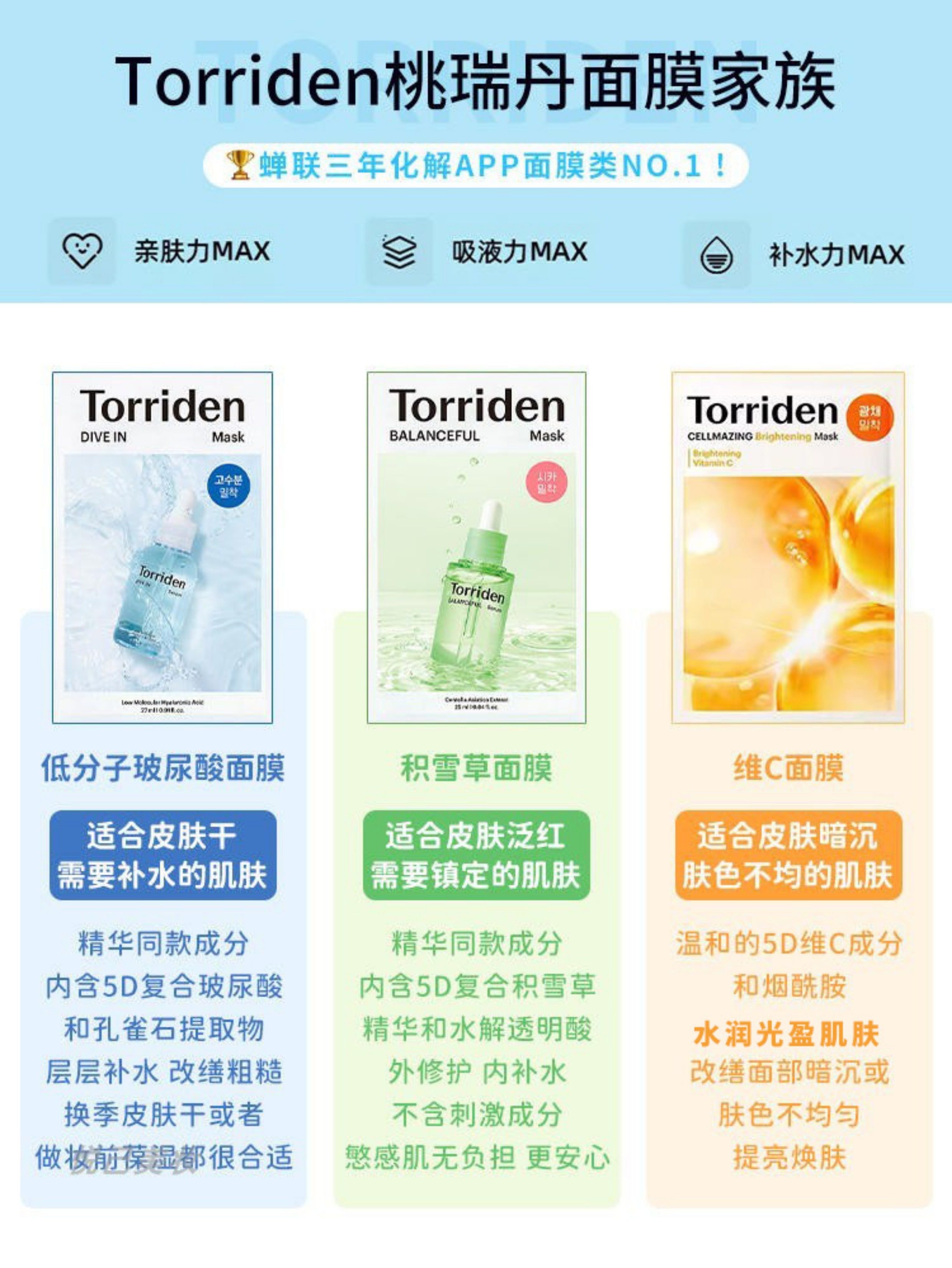 韩国Torriden桃瑞丹面膜精华5D玻尿酸补水舒缓修护提亮