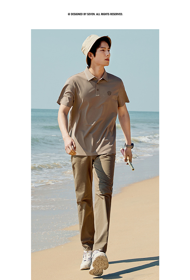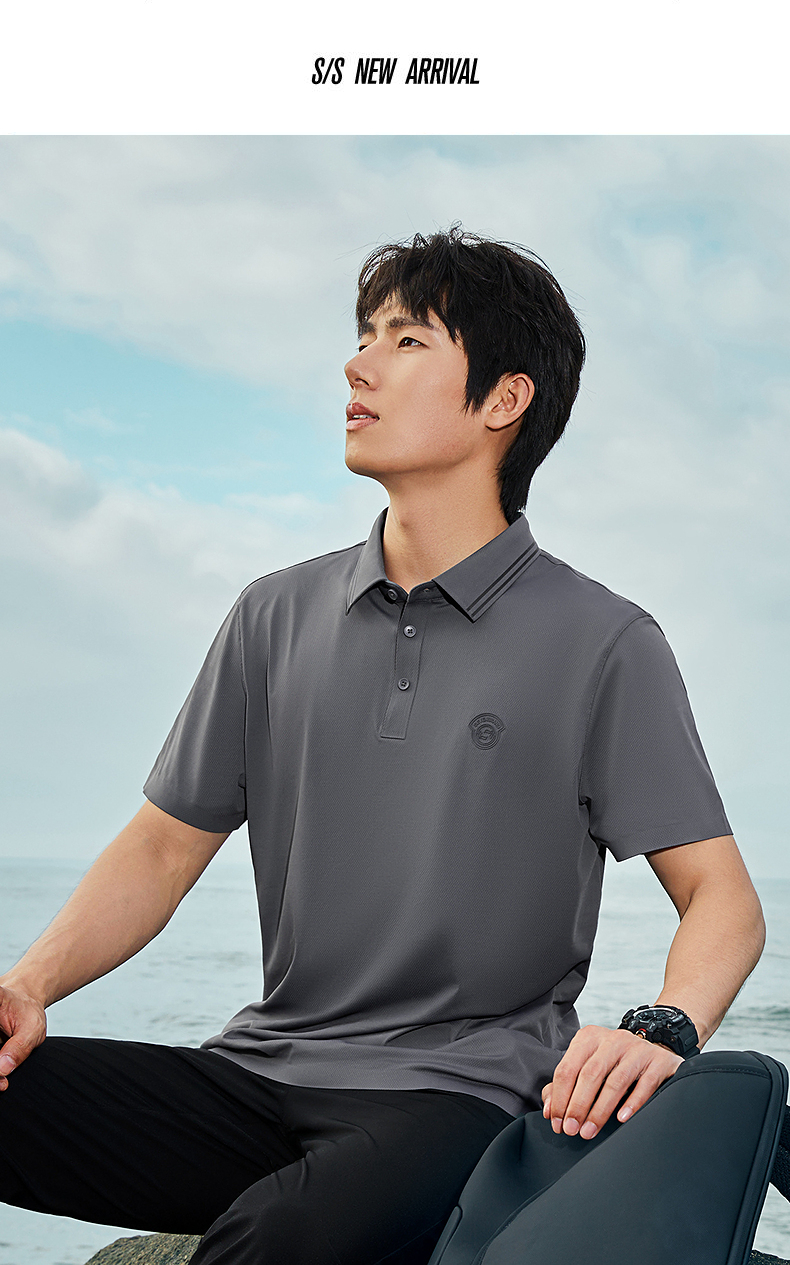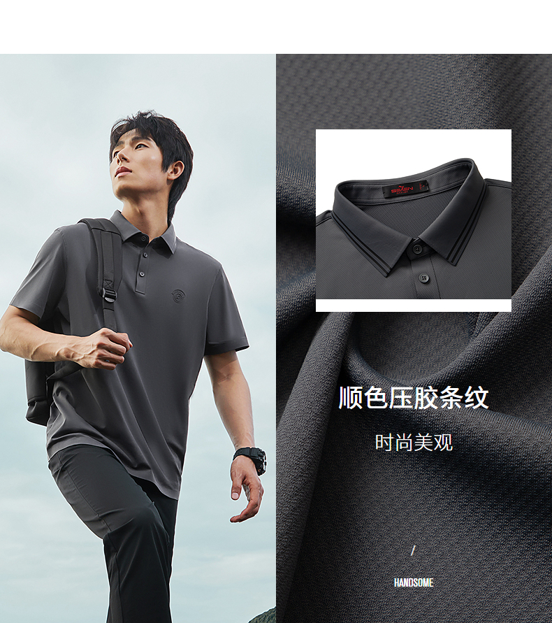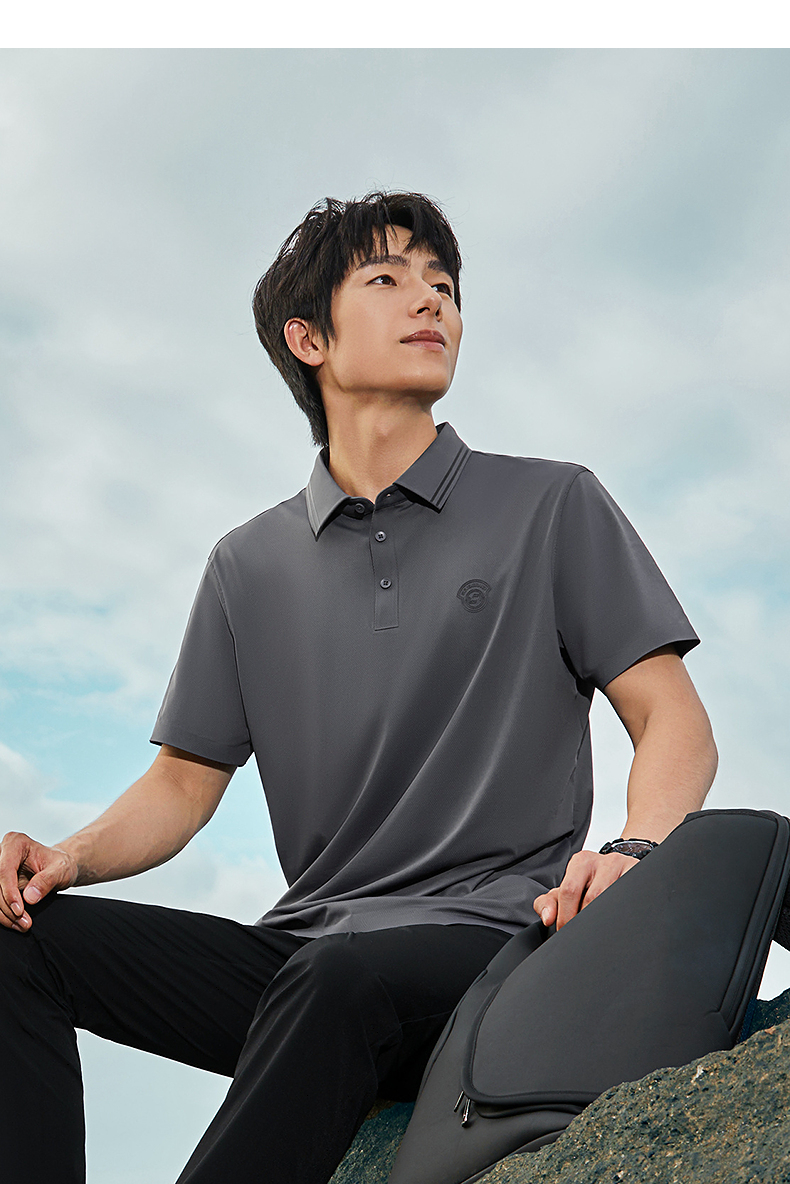 【无缝压胶】柒牌男装短袖polo衫男夏季新款商务百搭高弹翻领T恤 126T73220