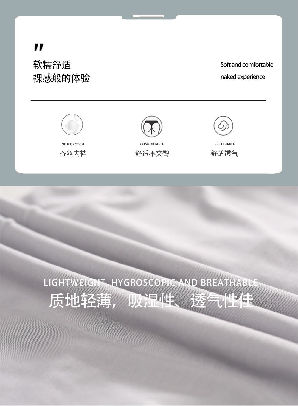 裆部含桑蚕丝,吸湿透气、亲肤抑菌,久坐不闷