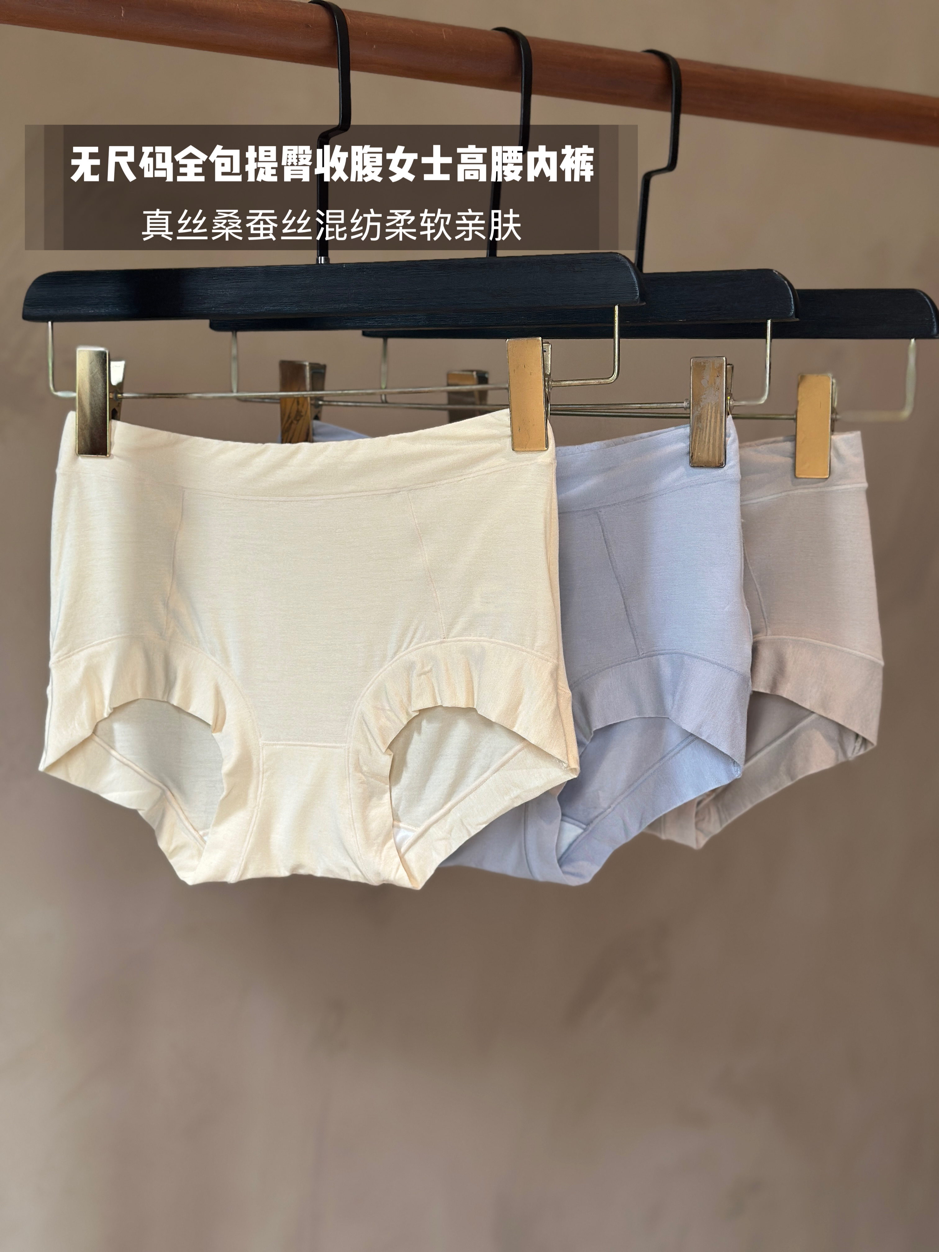 超舒适无尺码全包臀真丝桑蚕丝混纺底裆内裤,提臀收腹女士高腰内裤3条装 日单跟单品质价格给力!双层弹力宽腰边,贴身不勒腰 腿部无痕裤脚,舒适包边 面料亲肤柔软,弹力延展不紧勒 密拷锁边做工更精致