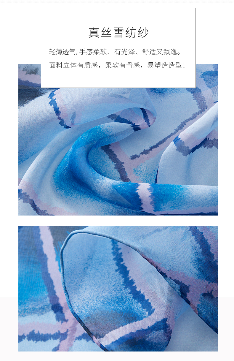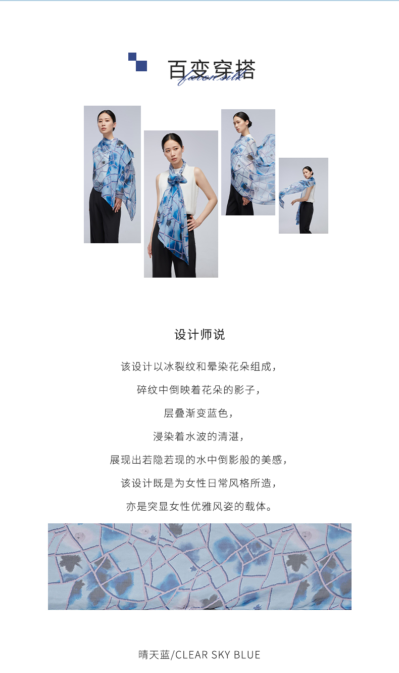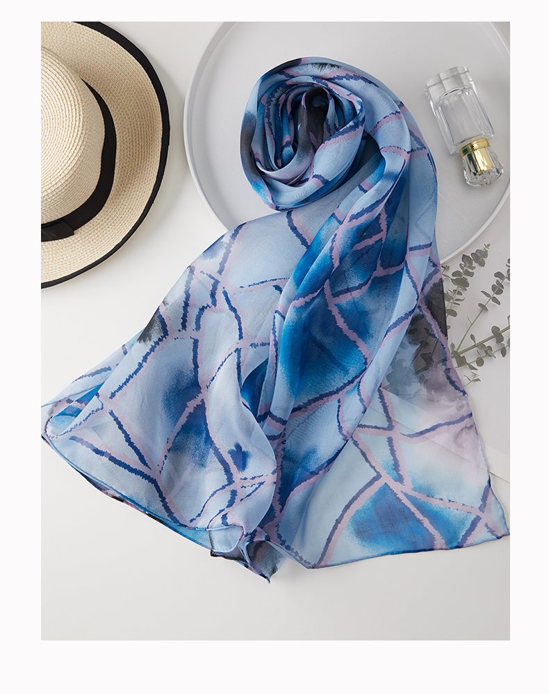 SAINTJOY/上久楷 女式真丝方巾 蓝色无题 FJ17010