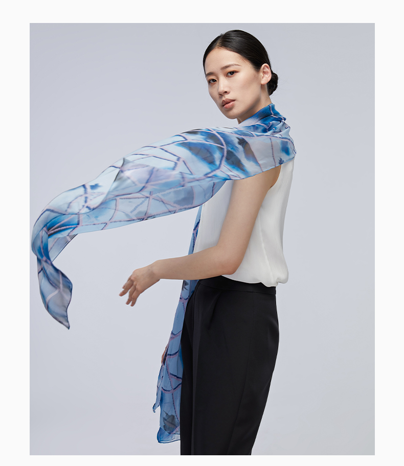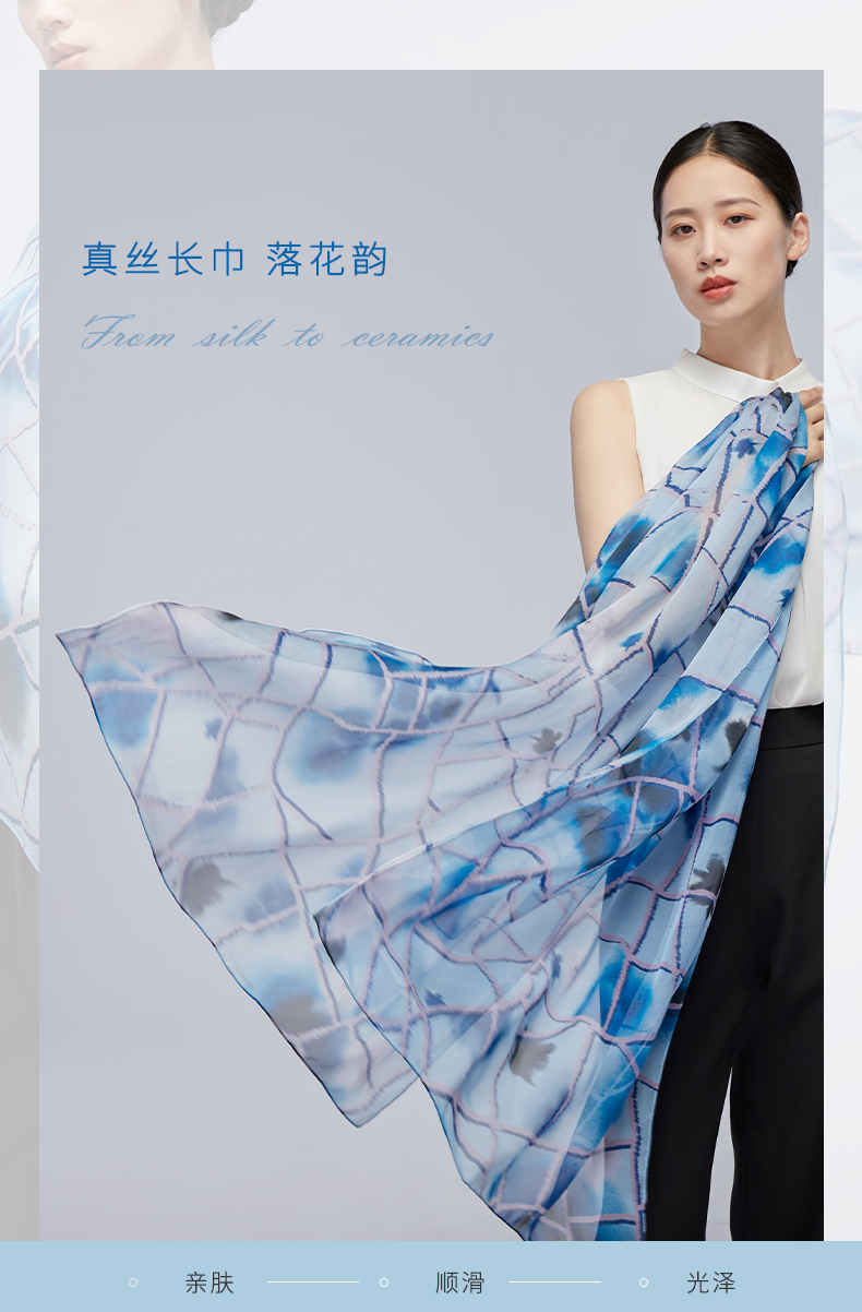 SAINTJOY/上久楷夏季真丝长巾 桑蚕丝 落花韵 CJS22077