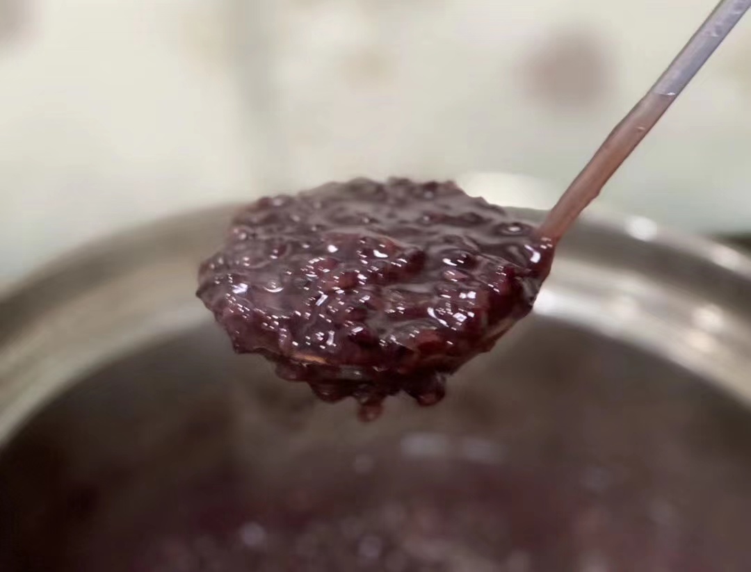 紫米熬制的米粥清香油亮、软糯适口,天然滋补。