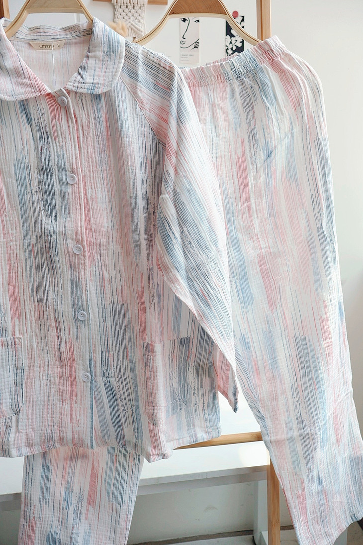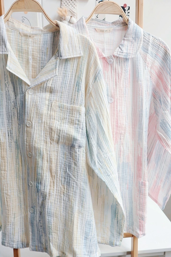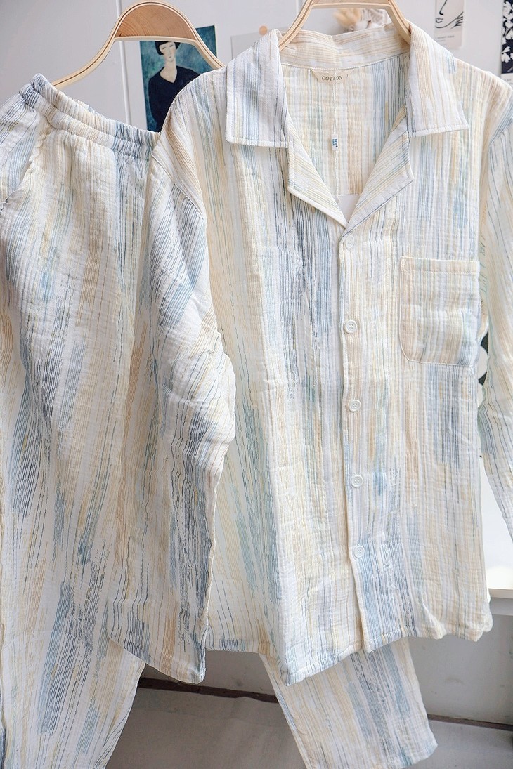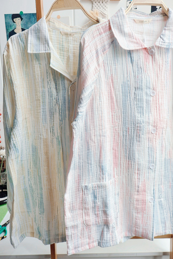 拥有一件舒适又好看的家居服 真的很有幸福感 【玛万生活情侣全棉双层纱流光溢彩】 质感超爆, 干净又高级 为生活注入新色彩新活力 享受浪漫又自由的舒适时光