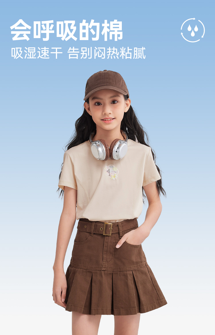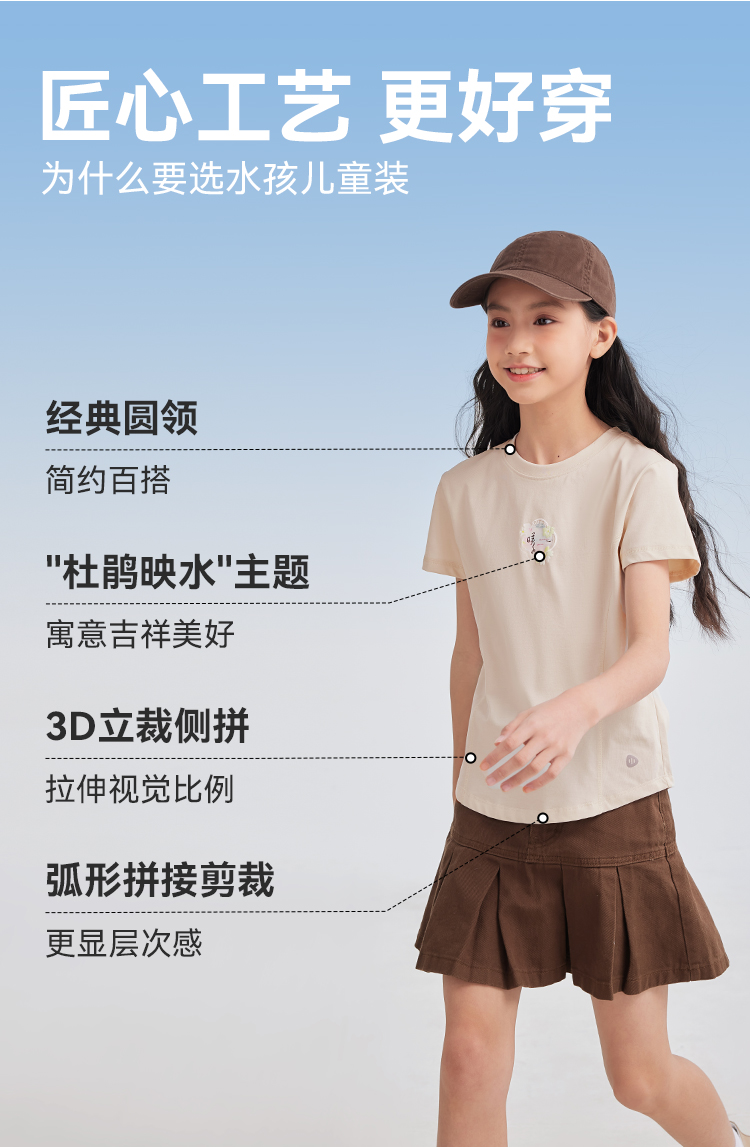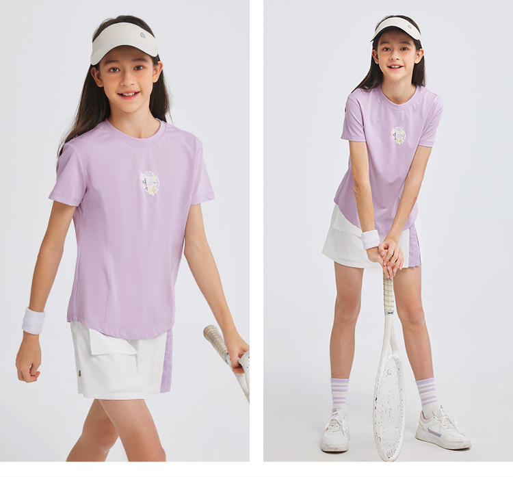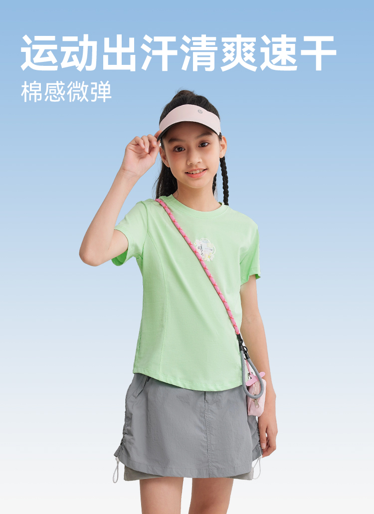 水孩儿童装女童速干T恤夏季新款儿童弹力透气短袖大童圆领衫上衣