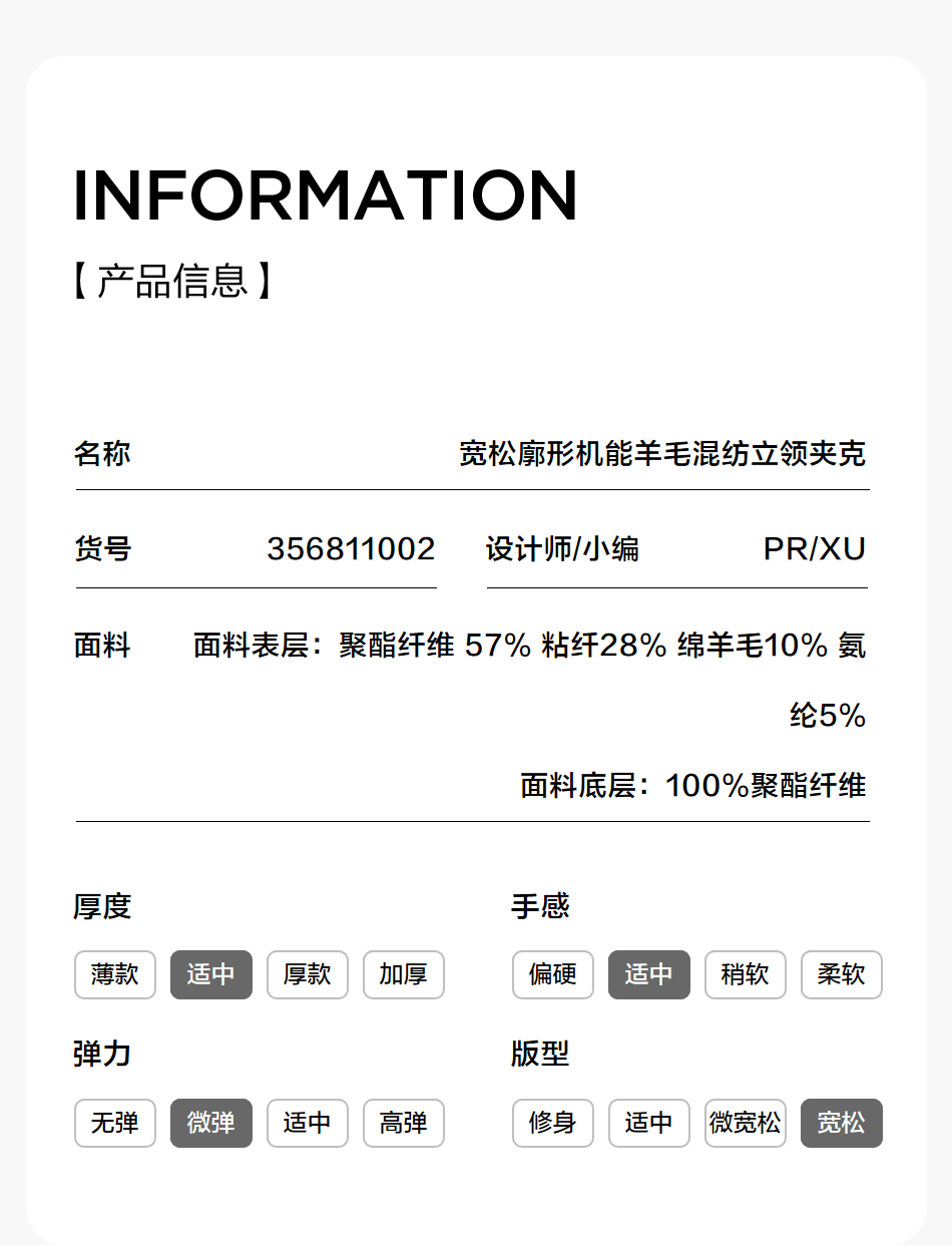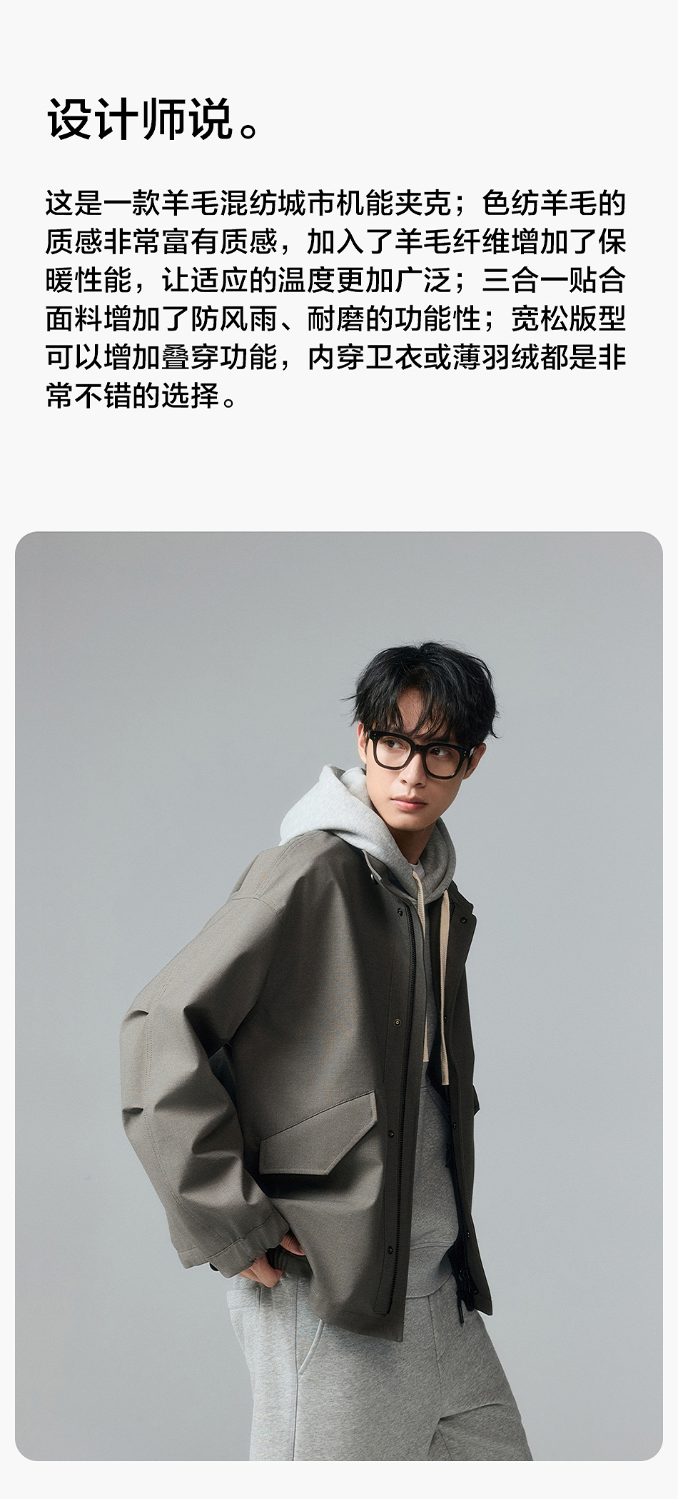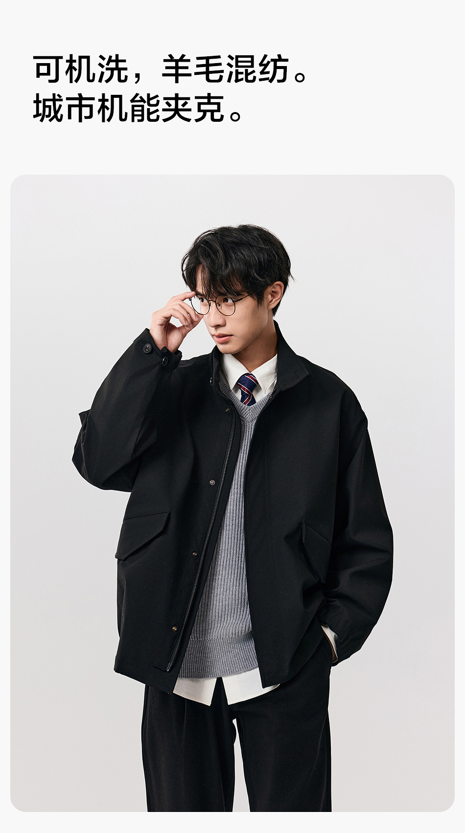 【品牌优选】棉仓宽松廓形机能羊毛混纺立领夹克