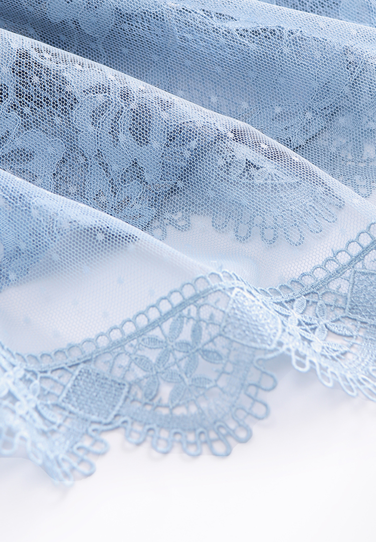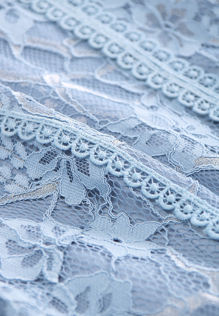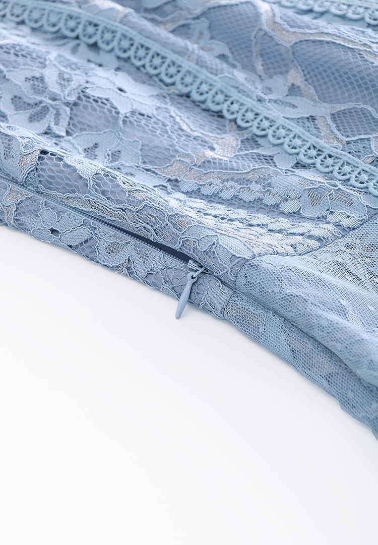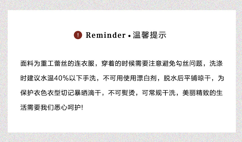 特别挑选繁复精细的骨线缝绣勾勒出zui精致有型的面料,相较于一般蕾丝,它手感柔软、轻薄、且略帶挺度,清洗不易变形不易皱,且与裙体网纱一样,触感柔软透气。