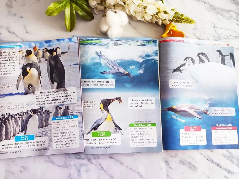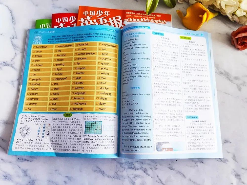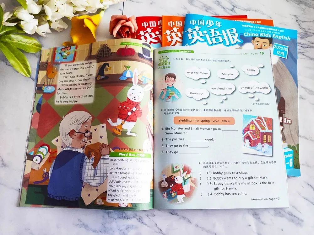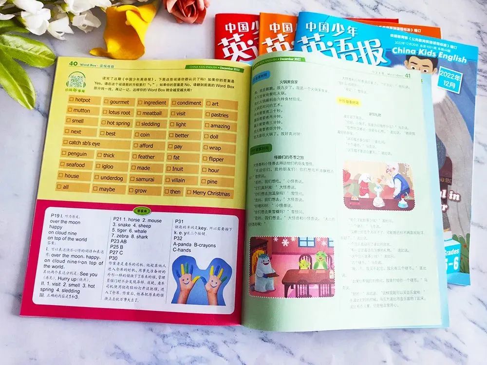 每期杂志几乎都有几十个单词,既有课堂上出现的、课标要求的高频单词,也有课外的新词,各种需求都能满足;句子也是越来越长,涉及到的语法结构越来越多。