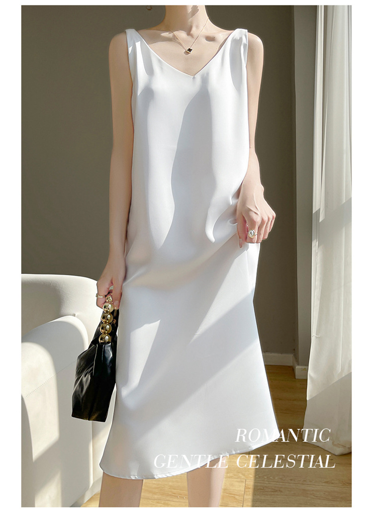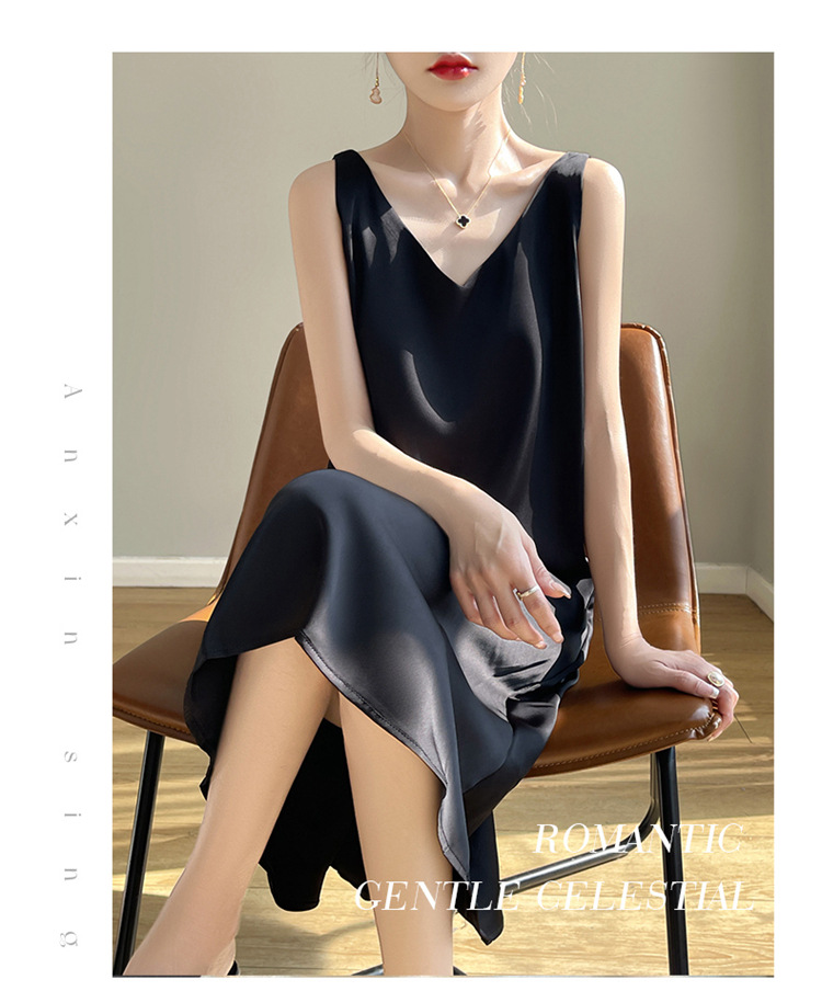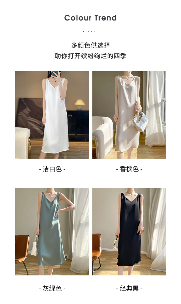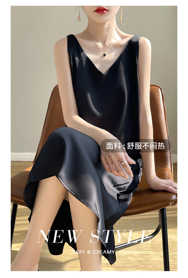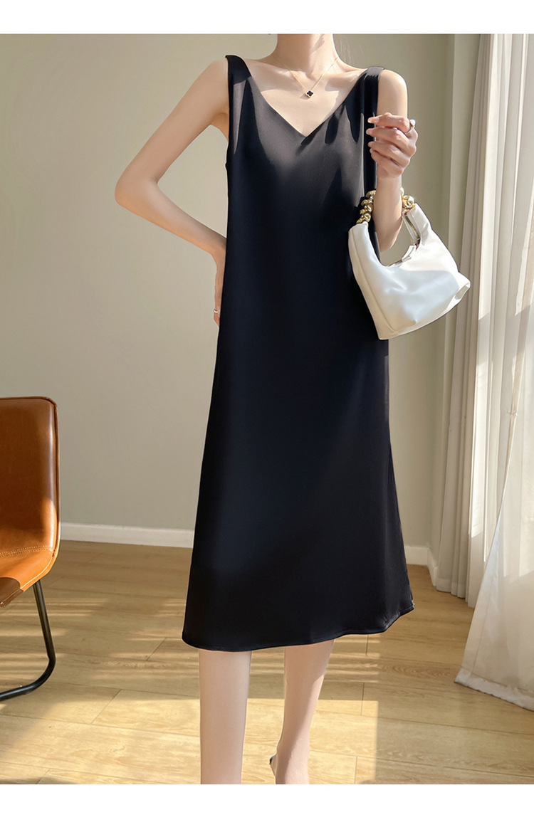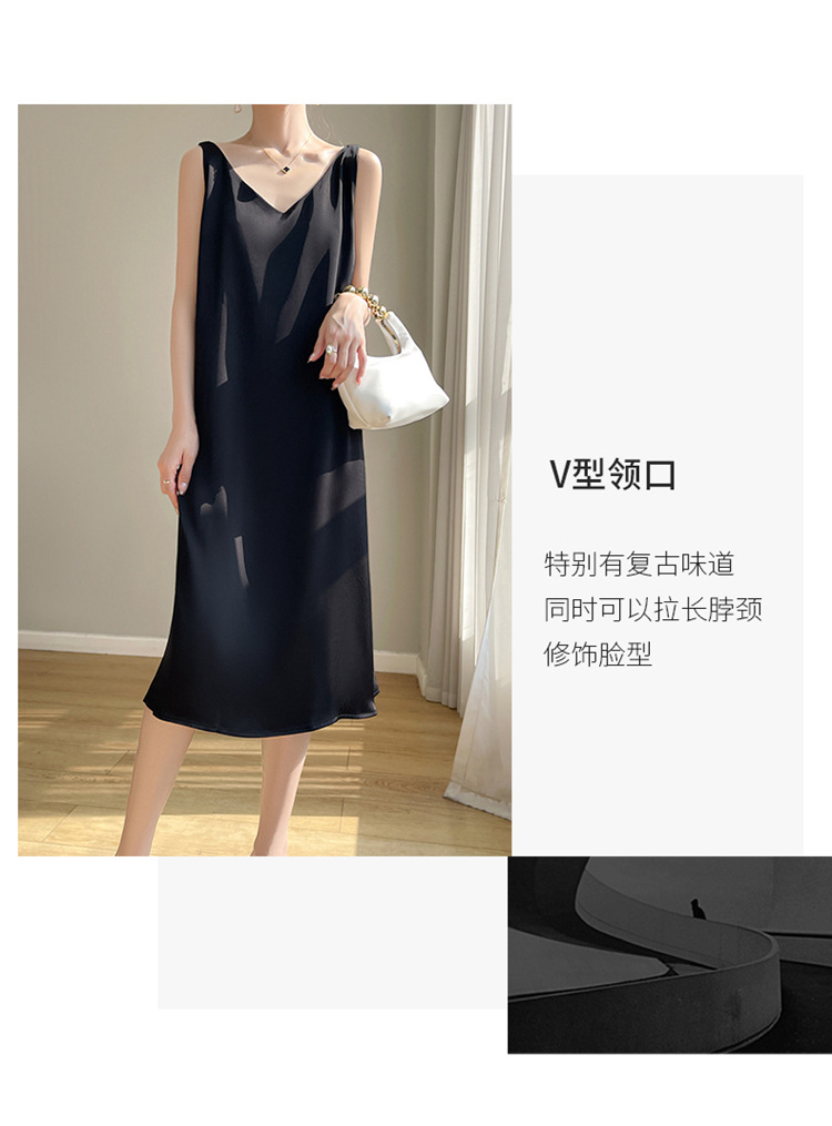 【赫本风无袖V领吊带连衣裙】中长款a字背心内搭裙 仿真丝西装打底裙