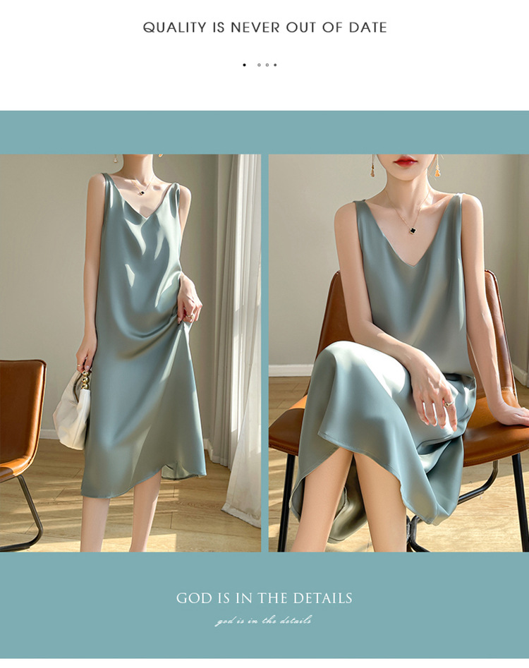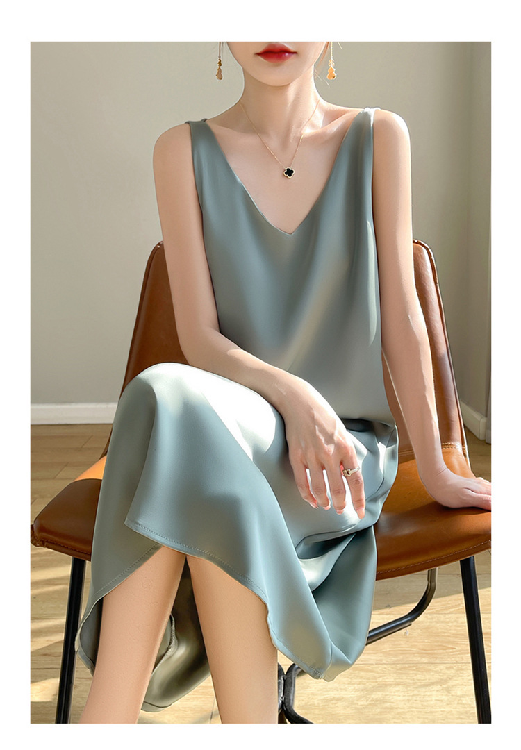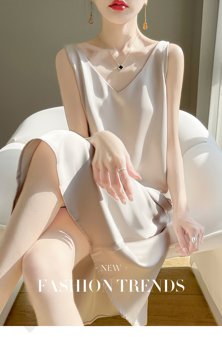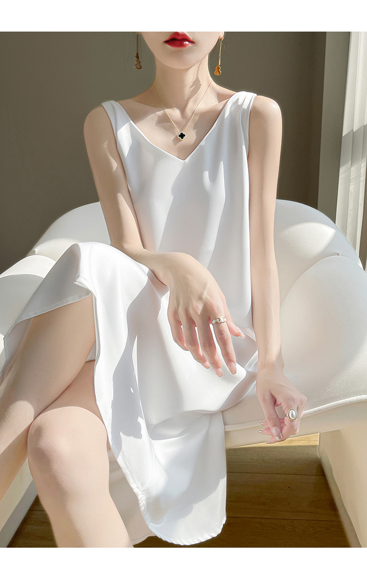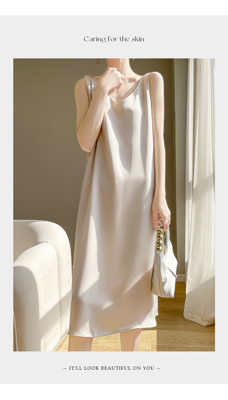 【赫本风无袖V领吊带连衣裙】中长款a字背心内搭裙 仿真丝西装打底裙