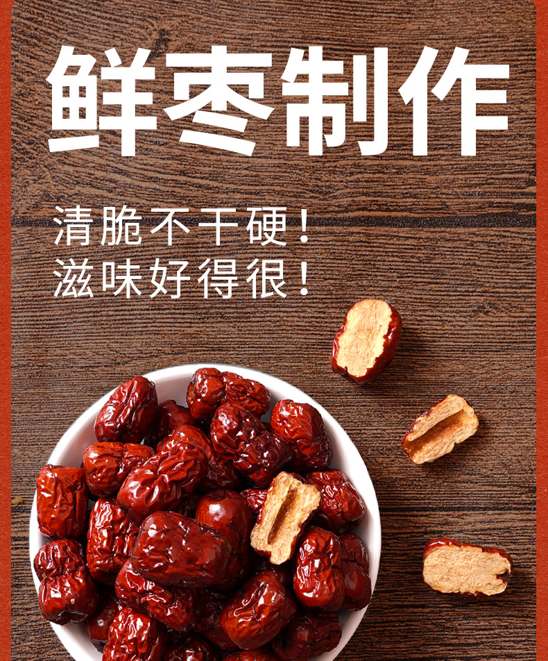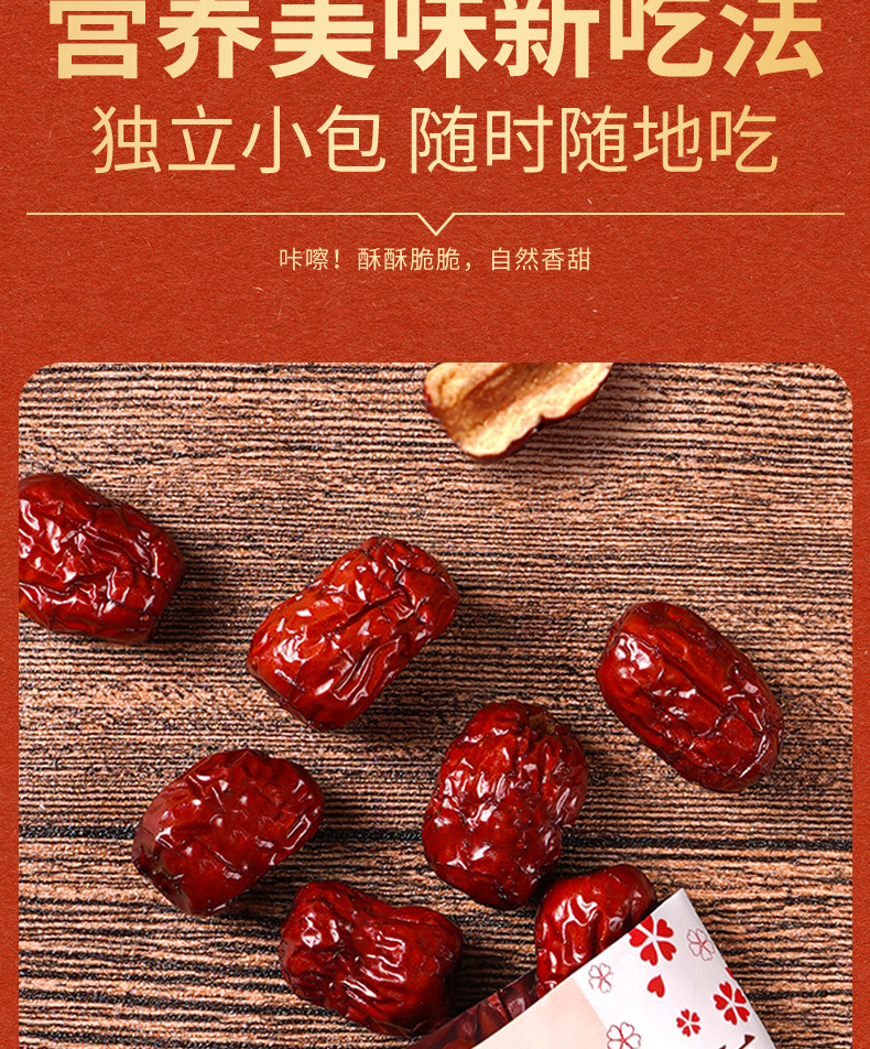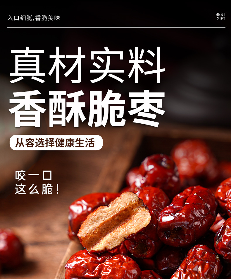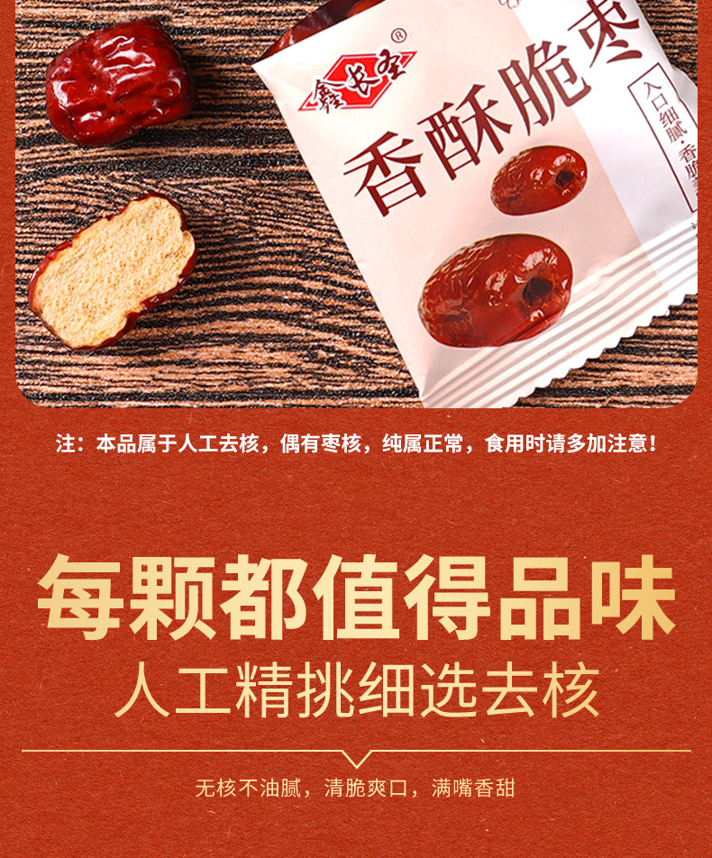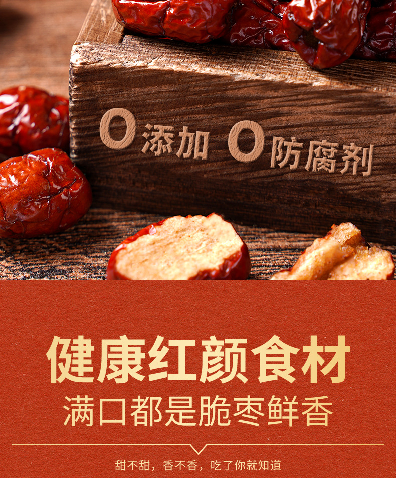 【咬一口这么脆!满口都是脆枣鲜香】优选新疆红枣,营养丰富,去核方便。吃过一颗,顿感幸福满足。香酥脆枣,小包即食,健康零食,随时随地享受美味。健康特价清仓