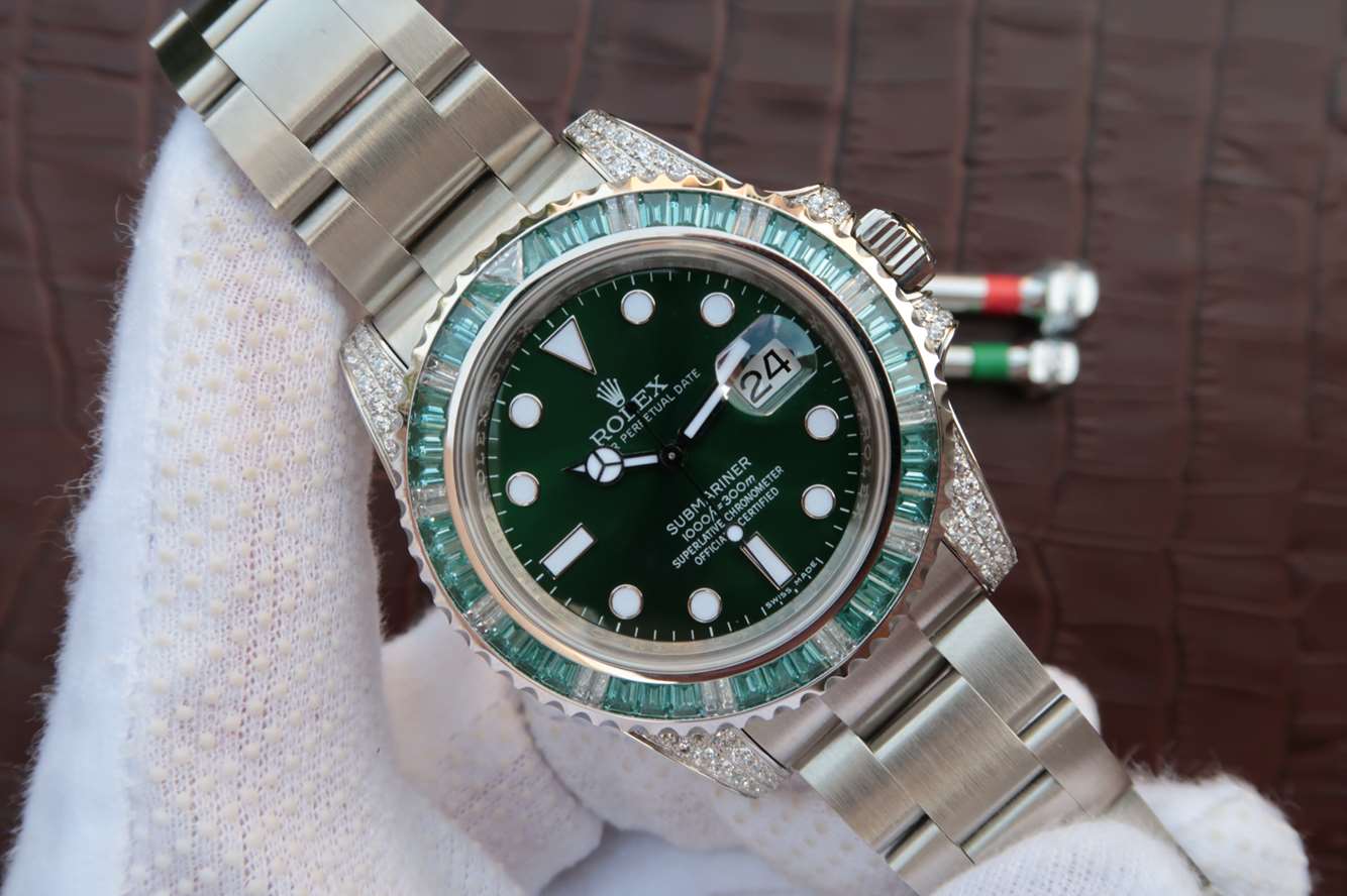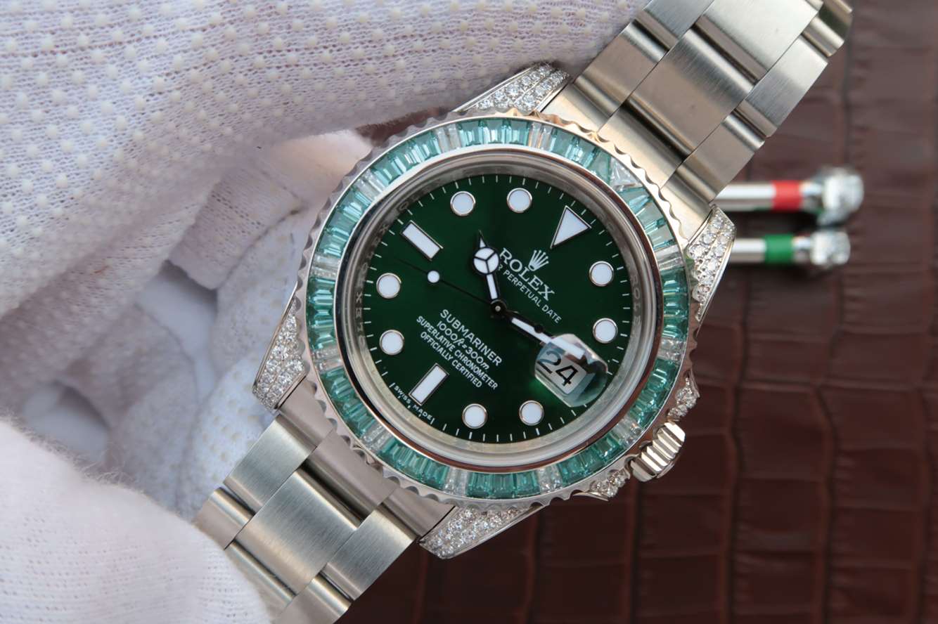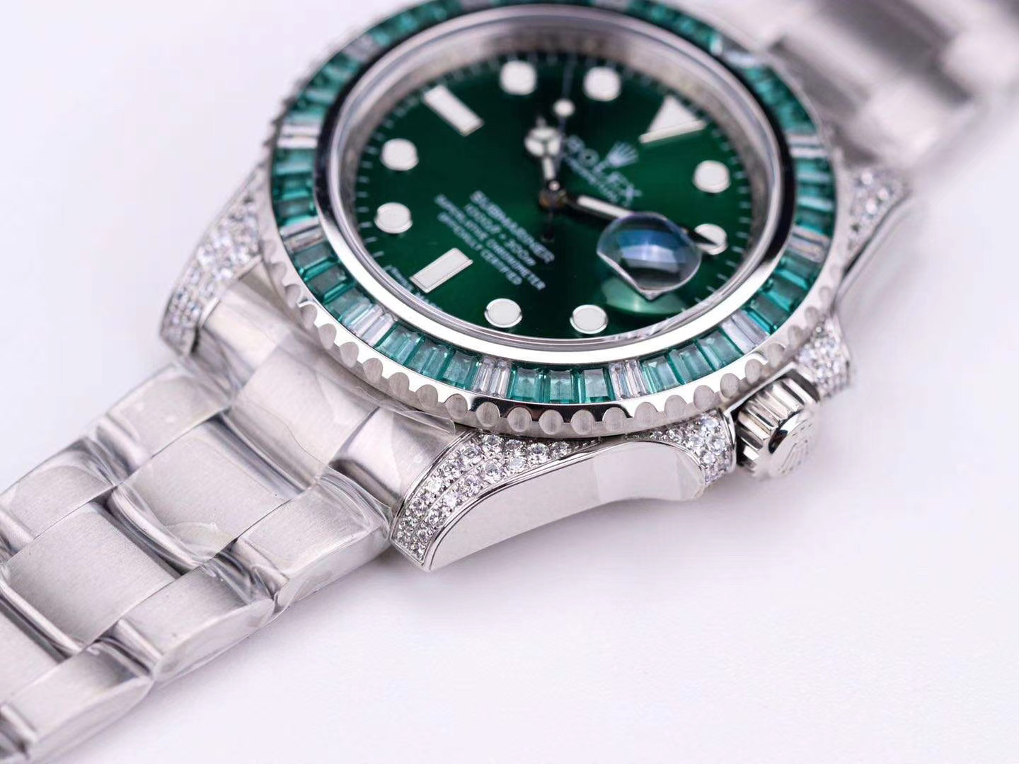 N劳li士潜航者翠绿绿水鬼116610LV镶钻欧美版.V12终极版,瑞士2836机芯,蓝宝石镜面,316l实心精钢,纯水刀切割,拉丝处理,圈口银粉装刻度,精钢表带,自动机械机芯,男士手表,密底