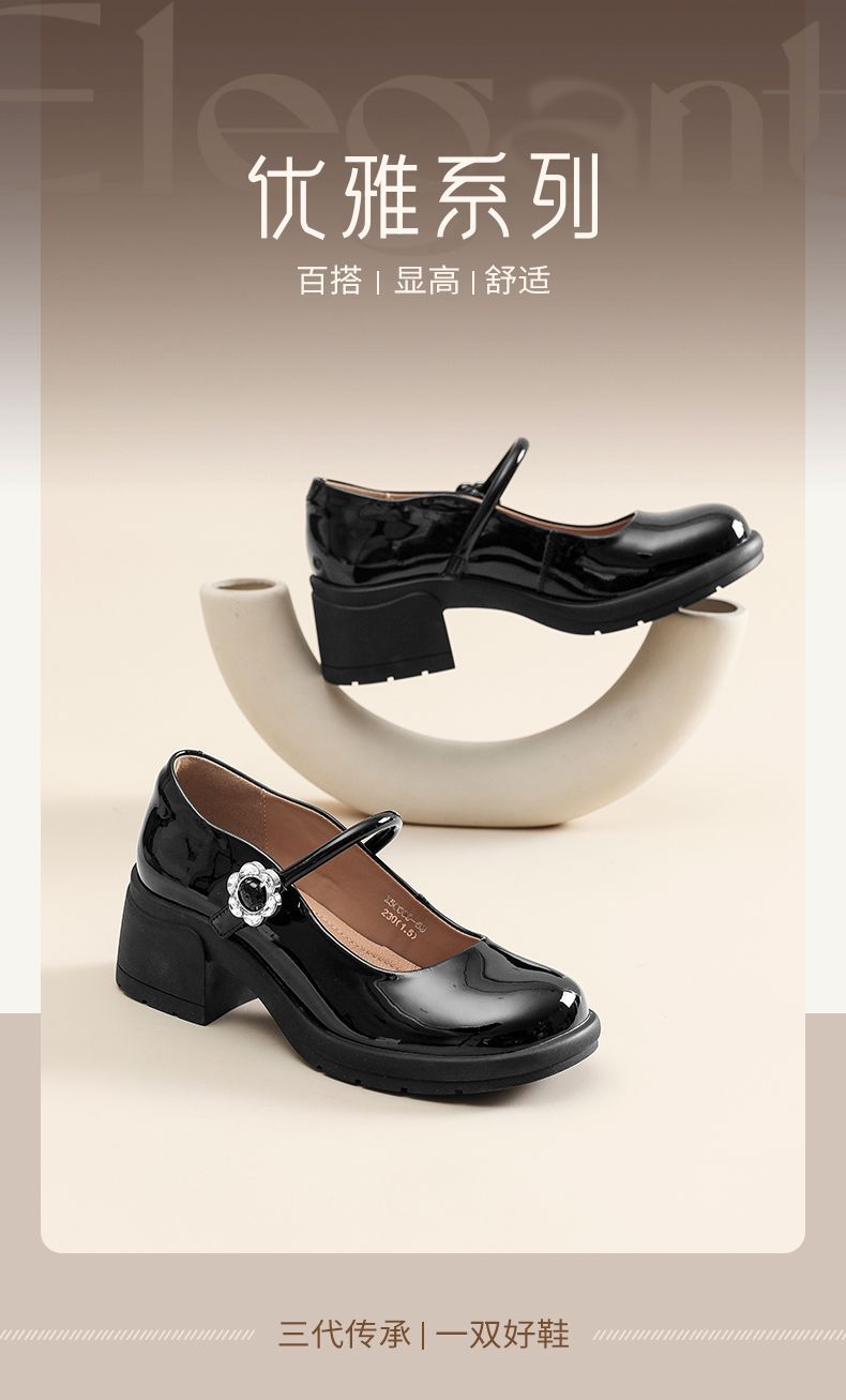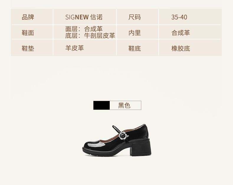 信诺粗跟厚底玛丽珍鞋2025年春新款法式英伦风百搭浅口小皮鞋女鞋X5C009-59