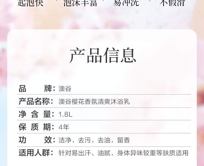 澳谷樱花香氛沐浴露沐浴乳1.8L持久留香