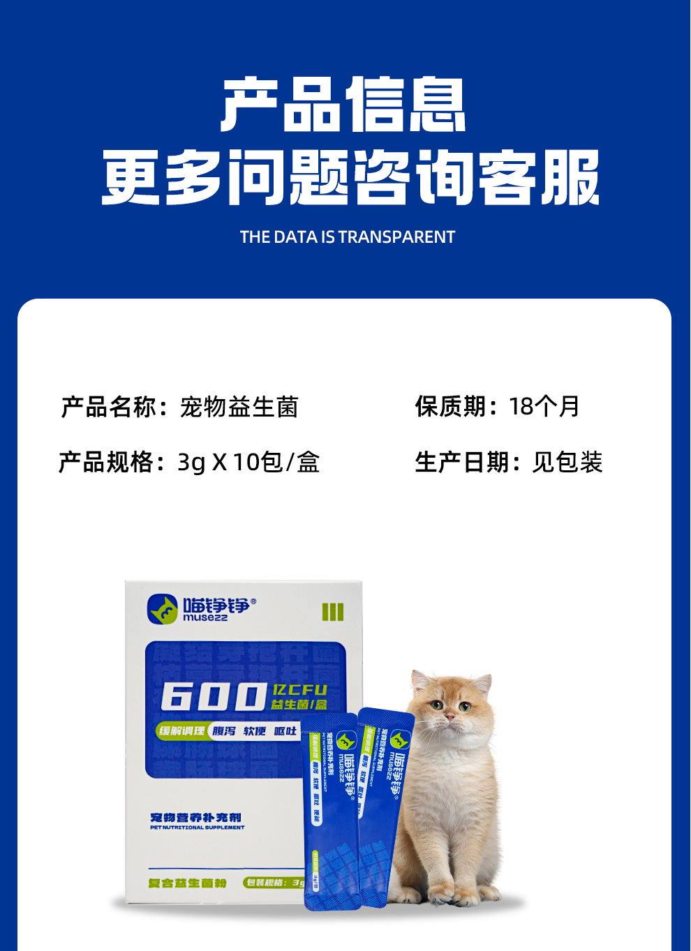 喵铮铮益生菌 3g*10支 调理猫咪软便肠胃助消化