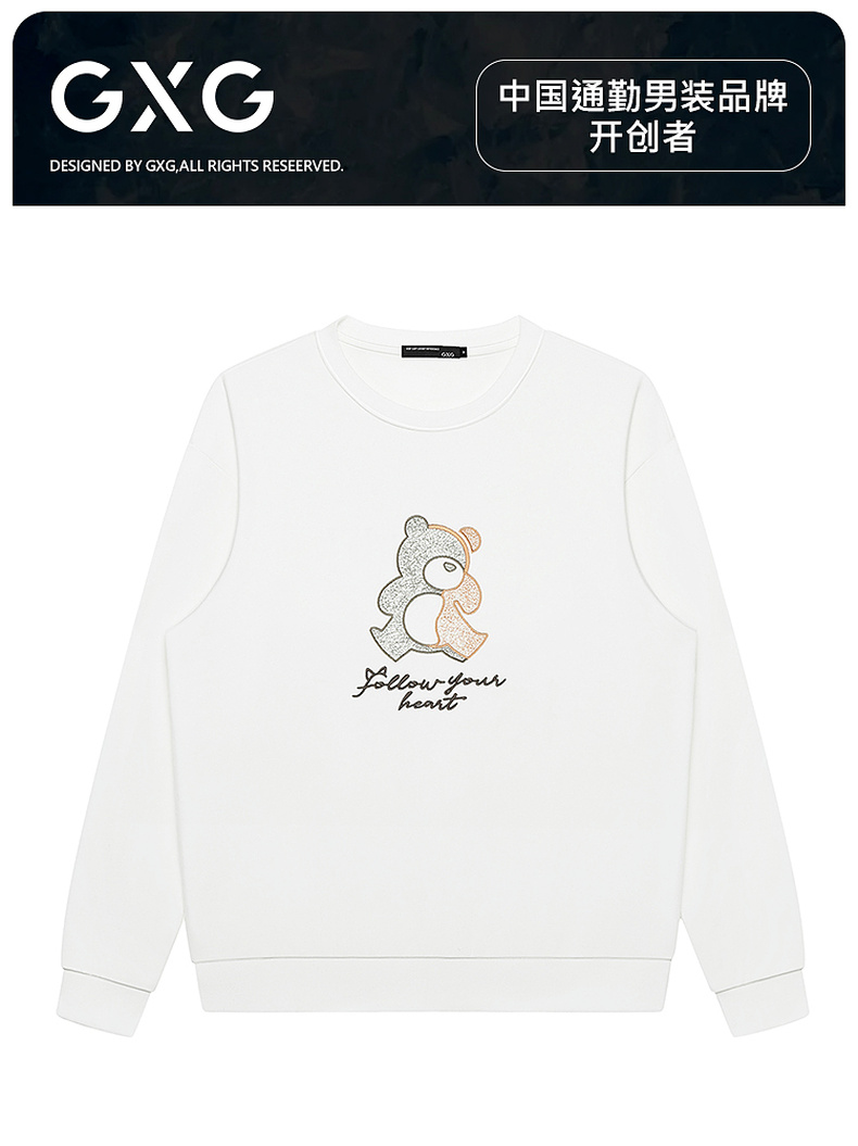 GXG男装【100%棉】26春季卡通刺绣小熊男女同款慵懒风圆领卫衣K&C