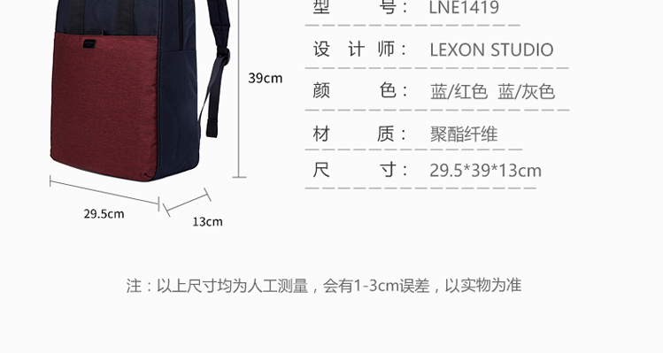 法国乐上(LEXON) 双肩包女士背包14英寸笔记本电脑包旅行布艺定制情侣大学生书包 RB8T