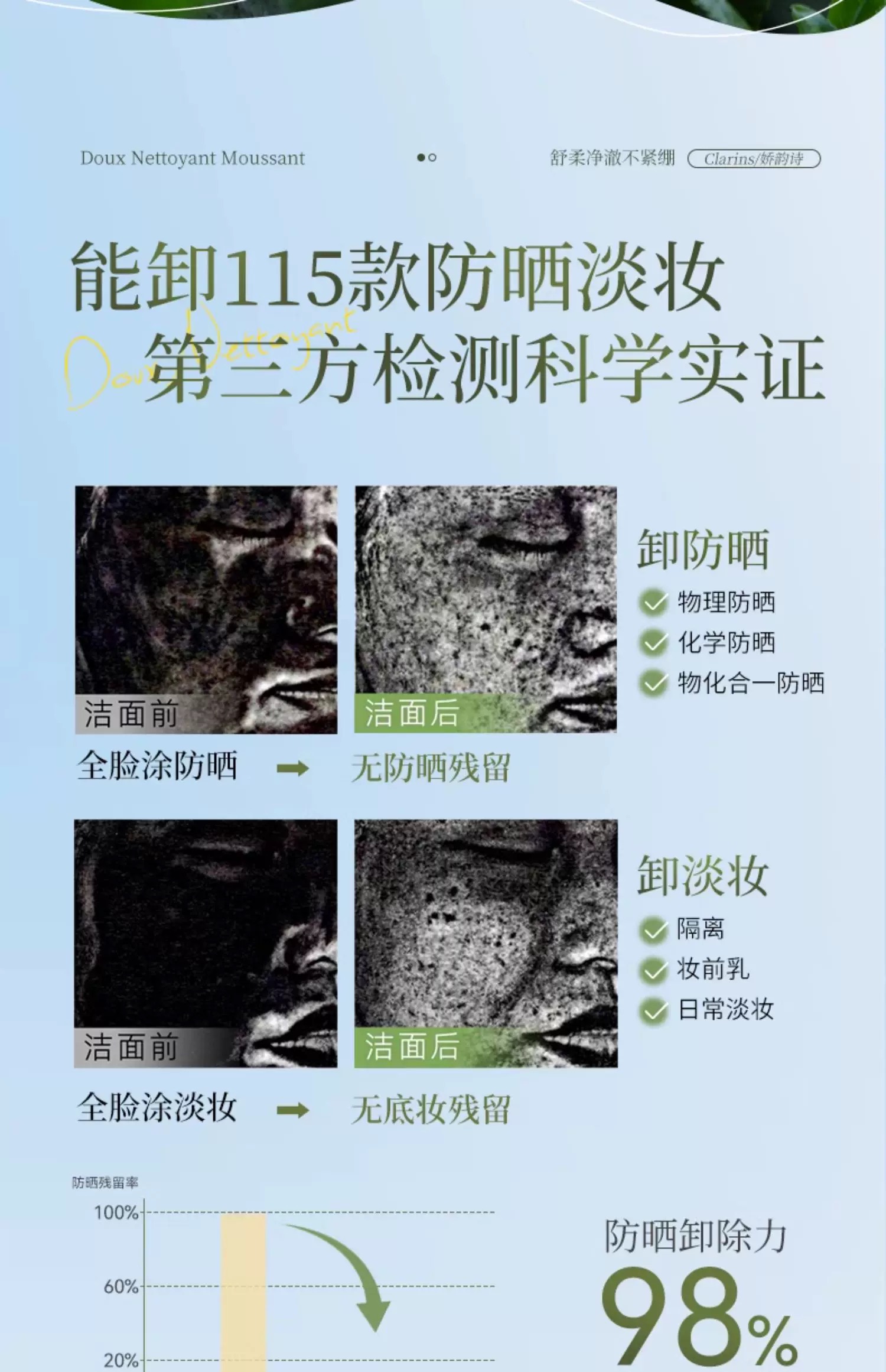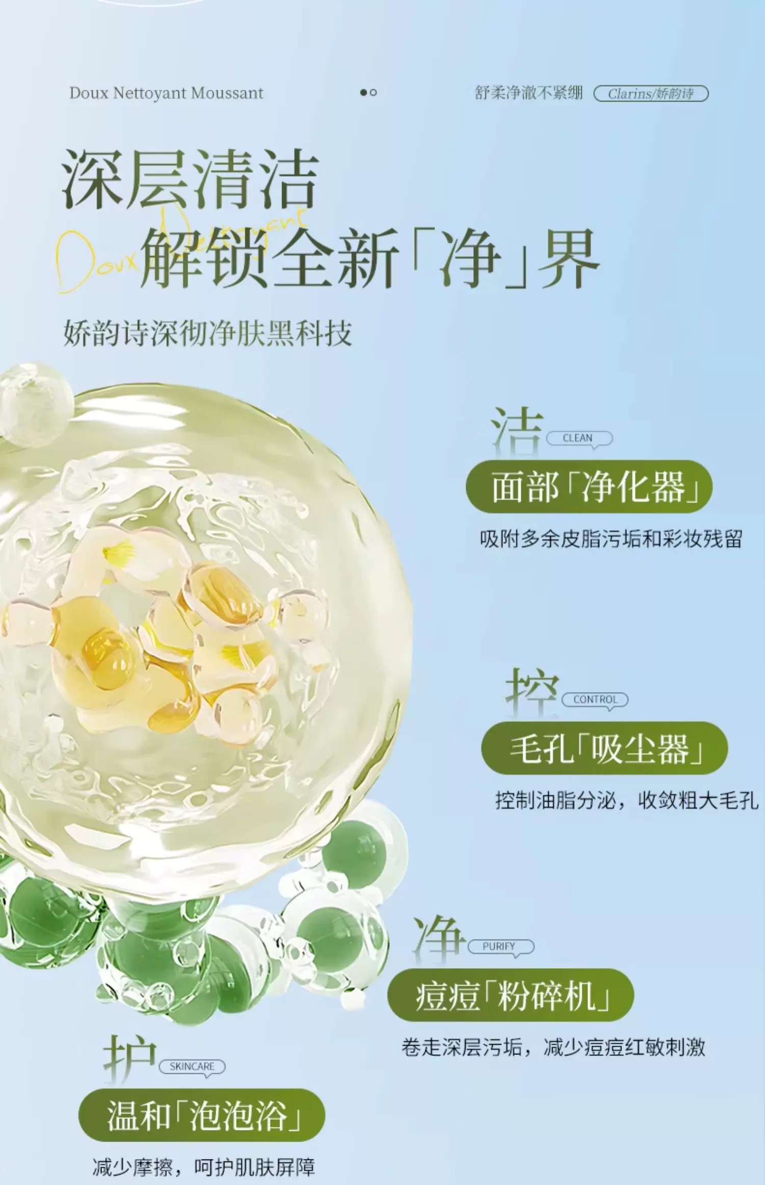 CLARINS娇韵诗净透泡沫罗望子洁面乳125ml 清洁滋润保湿去角质