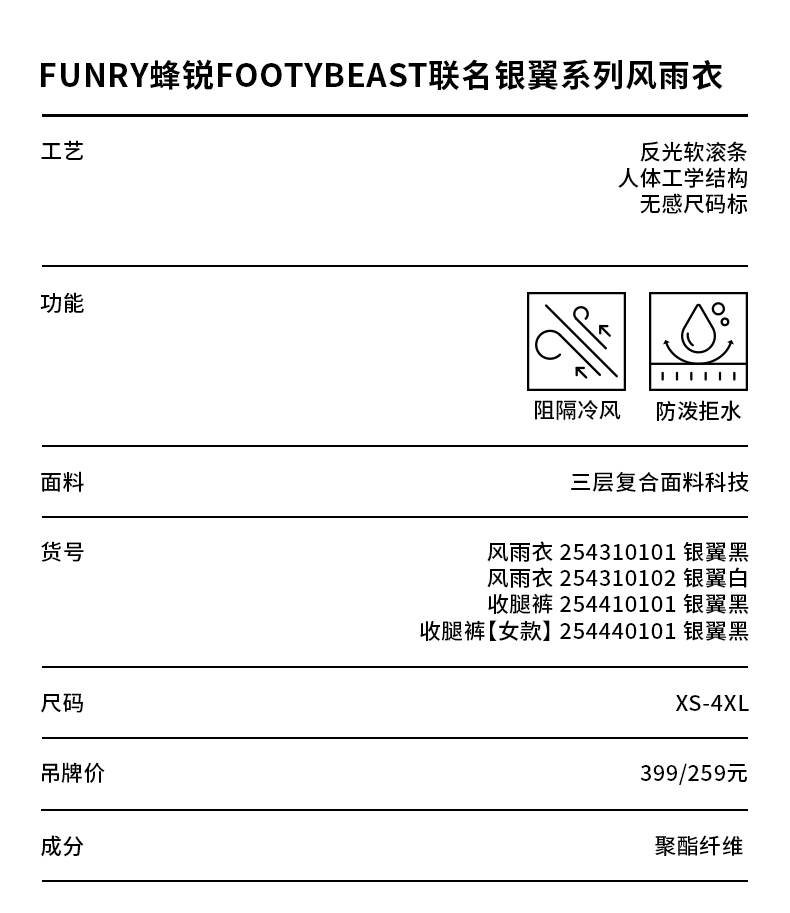 【成人&青少年】蜂锐FOOTY BEAST联名款风雨衣