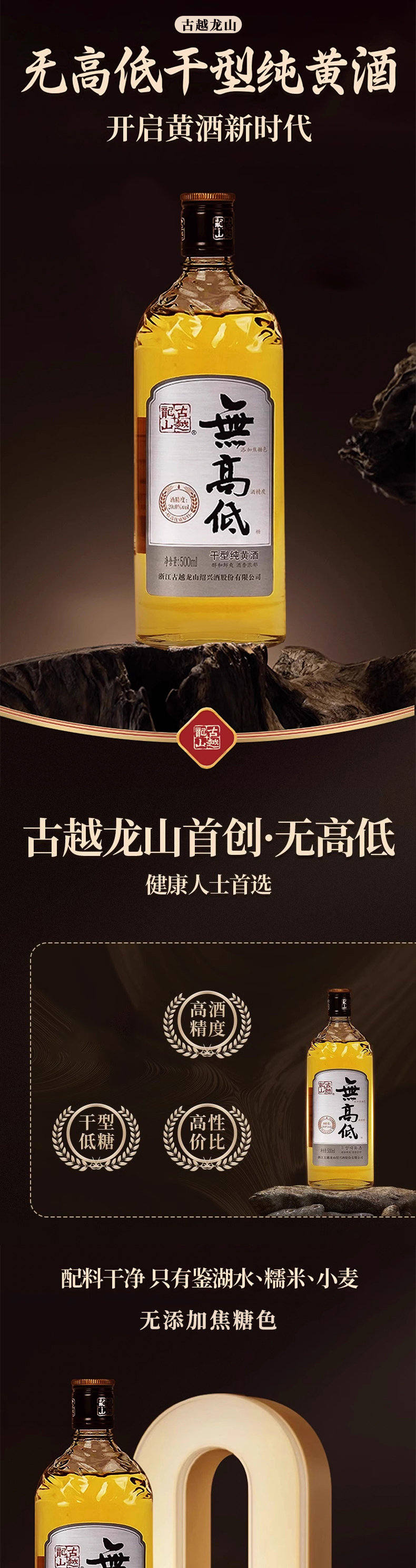 古越龙山無高低干型纯黄酒500ml